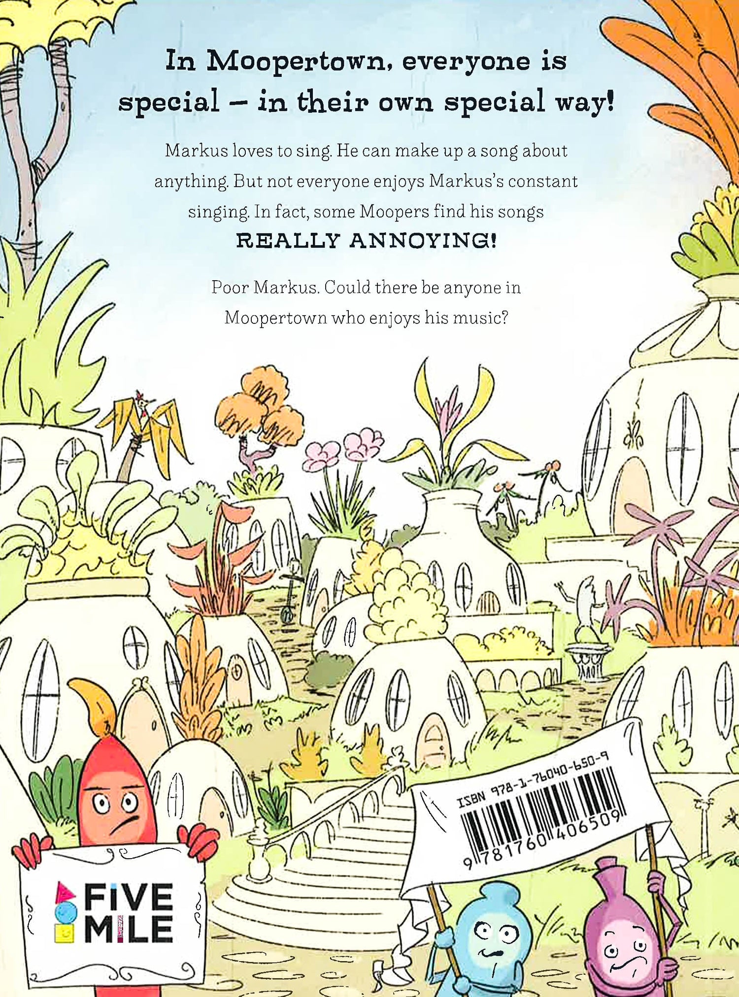 Markus loves to sing. He can make up a song about anything. But not everyone enjoys Markus's constant singing. In fact, some Moopers find his songs really annoying! Poor Markus. Could there be anyone in Moopertown who enjoys his music?