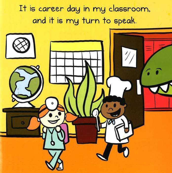 Today is career day at school! I am wearing my superhero cape and belt. Hello, my name is SUPER RAWR! It's career day at school, and RAWR the T-rex wants to be a superhero. SUPER RAWR to the rescue! SUPER RAWR is a dinosaur who can jump over tall buildings (blocks) and save the day! Preschool, pre-K, and kindergarten children will RAWR with laughter, and career day will never be the same. In the end, RAWR likes just being himself--at least until he goes to sleep and dreams of being an astronaut. Super Rawr! has a cloth cover with a cape and superhero outfit! Young superhero and dinosaur enthusiasts will love RAWR and SUPER RAWR!