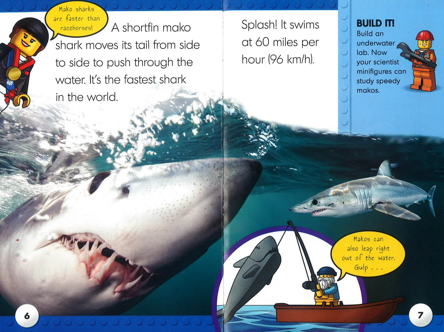 Take a deep dive under the sea and learn all about the fiercest creatures in the deep, blue sea-sharks-with help from the LEGO(R) minifigures. You'll find great LEGO building ideas throughout and stickers, too! LEGO(R) minifigures show you the world in a unique nonfiction program. This leveled reader is part of a program of LEGO nonfiction books, with something for all the family, at every age and stage. LEGO nonfiction books have amazing facts, beautiful real-world photos, and minifigures everywhere, leading the fun and discovery.