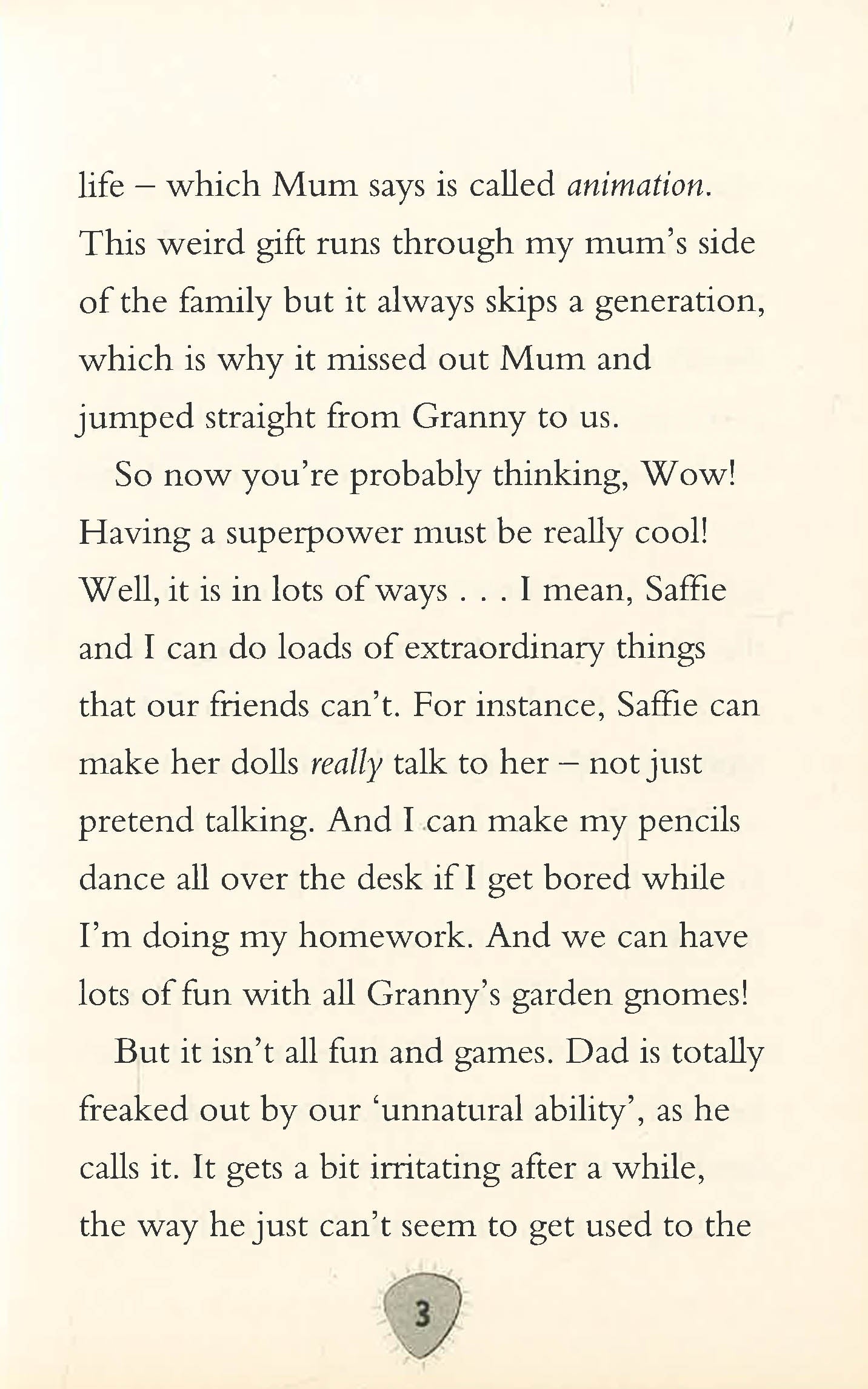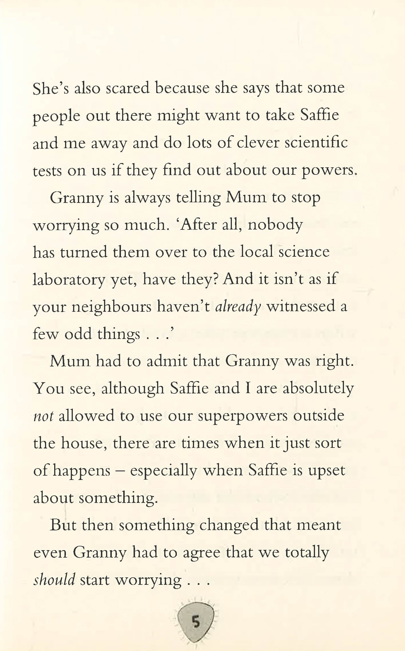 Emma knows that having superpowers isn't always easy, especially when you have to keep them secret. But it's even harder when your mischievous little sister can't help using them in the naughtiest of ways. And when Saffie makes the new nosy neighbours' garden shed come to life and hop over the hedge it's up to Emma to cover its tracks before it's too late!