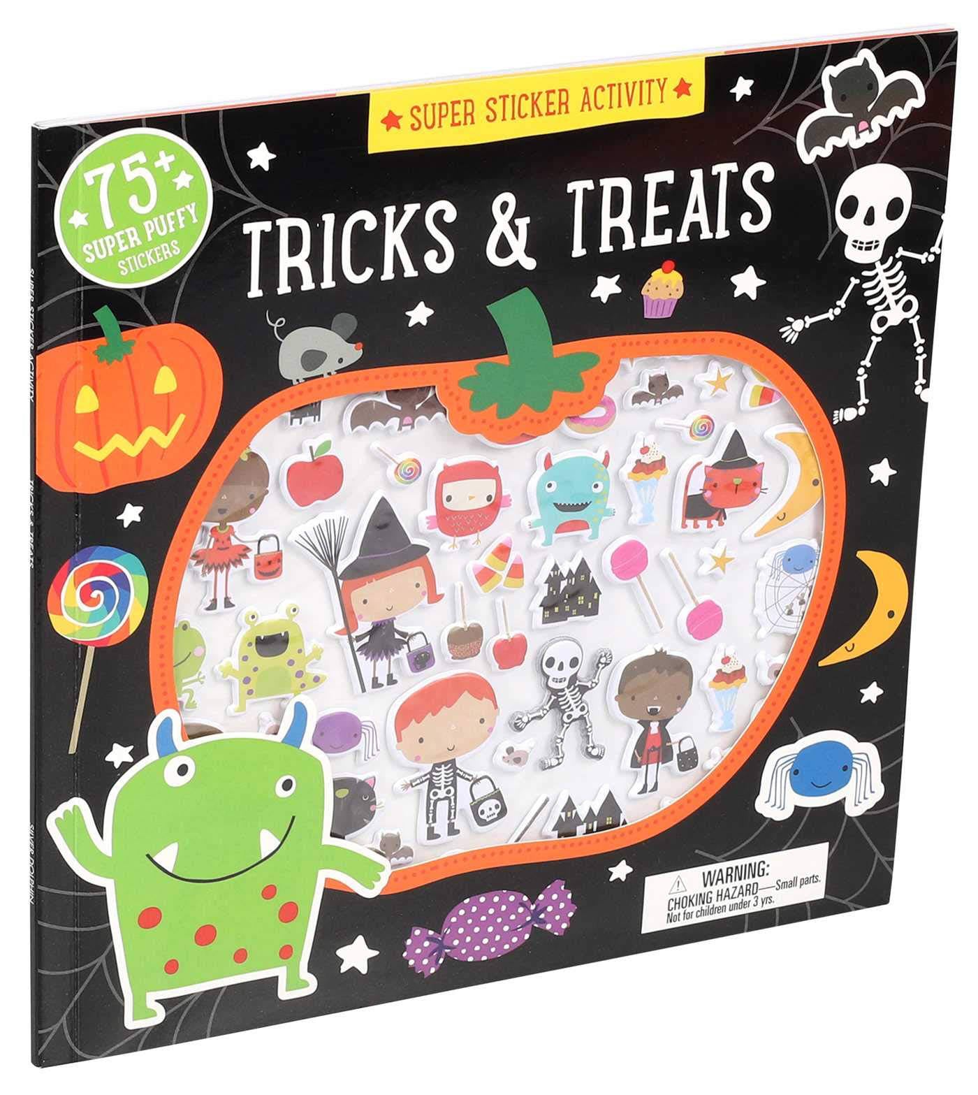 Jack-o'-lanterns, haunted houses, black cats, and more fun Halloween-themed activities are here in Super Sticker Activity: Tricks Treats! Perfect for at home or on the go, this 32-page book contains fun and engaging activities featuring childrens favorite things about Halloween. 75+ puffy stickers are included for additional hands-on amusement. Whether its doodling, dot-to-dots, or a search and find, young trick-or-treaters are sure to find hours of sticker and activity fun!
