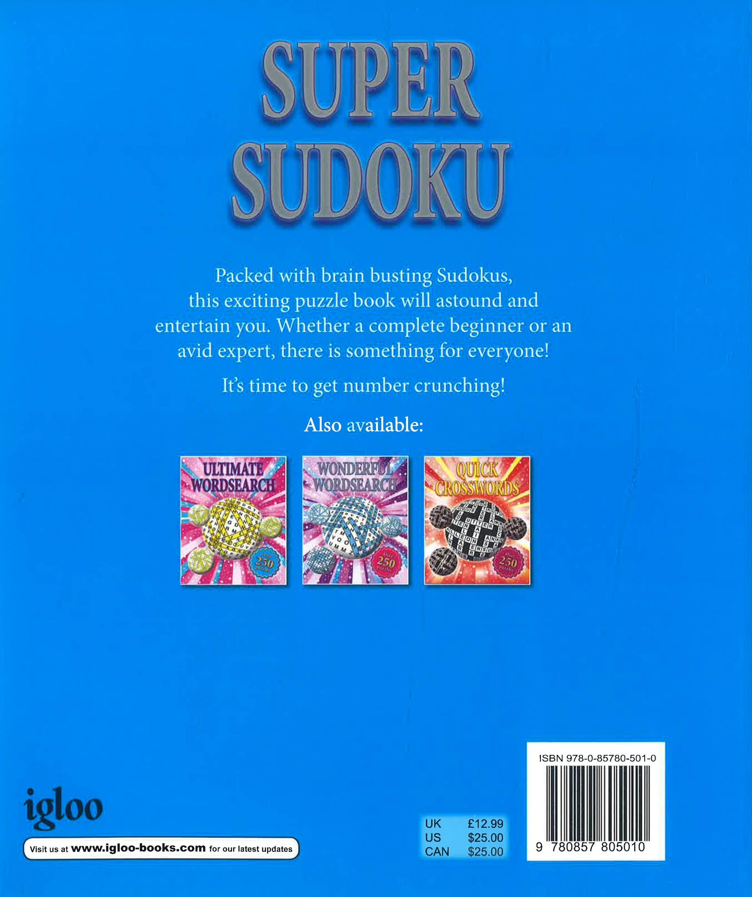 Packed with brain busting Sudokus, this exciting book will astound and entertain you. Whether a complete beginner or an avid expert, there is something for everyone! It`s time to get number crunching!