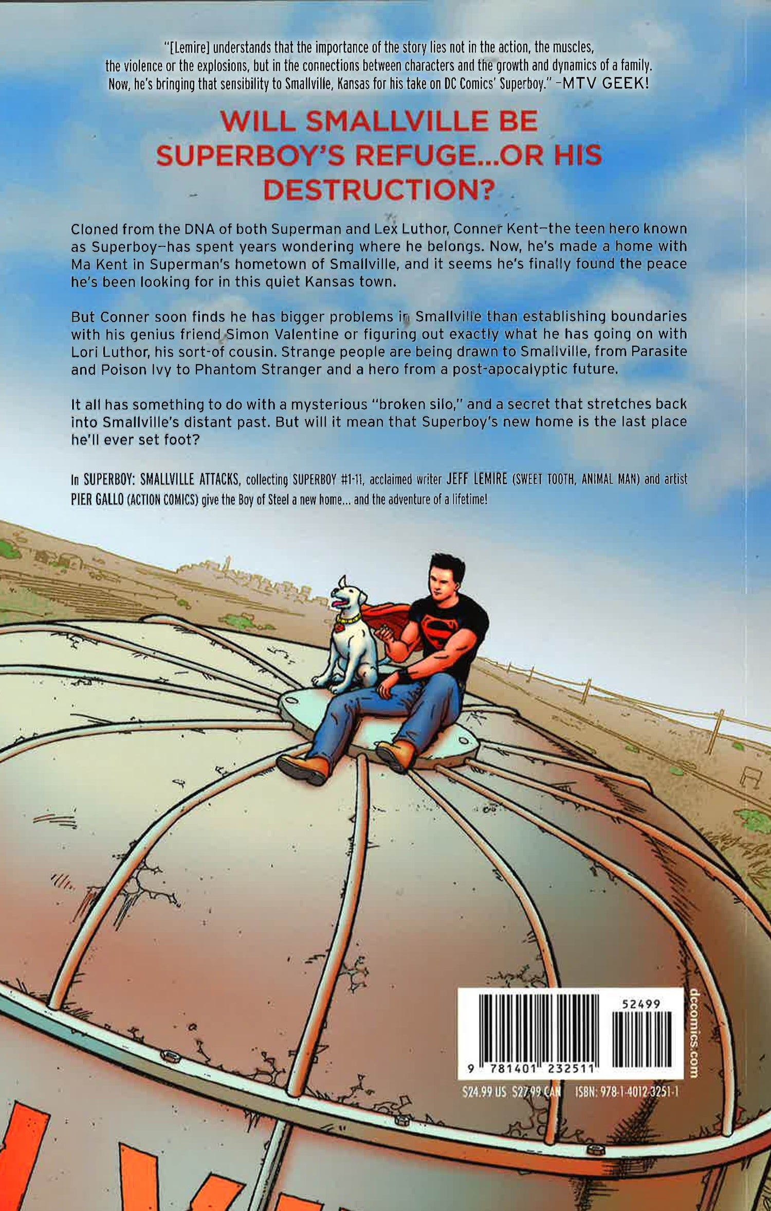 Superboy is back in a brand-new ongoing series! Join Jeff Lemire (SWEET TOOTH) and amazing up-and-coming artist Pier Gallo as they take Superboy on a journey to a side of Smallville not even Superman knows about! What mysteries lurk beneath the surface of this all-American town - and what are their direct ties to Superboy? The start of the next great DC Universe epic begins
