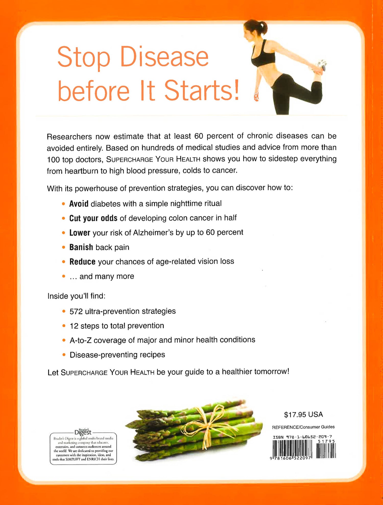 Supercharge your body's defenses and stop disease before it starts. Why get sick when you can stay well? Doctors estimate that at least 60 percent of chronic disease cases could be avoided entirely, and Disease Free shows you how. A powerhouse of prevention strategies based on hundreds of medical studies and advice from more than 100 top doctors, Disease Free shows you how you can prevent illness and maximize vitality. Inside you'll find: Twelve steps to total prevention A-to-Z coverage of major and minor health conditions Disease-preventing recipes including Asian Steak Salad, Basil Pesto, and Old-Fashioned Fruit Cobbler What symptoms you should never ignore Detailed prevention plans for more than 90 conditions help you sidestep everything from heartburn to high blood pressure, colds to cancer. You'll learn: The secrets to mega-immunity How to age without illness or pain How to save your bones, protect your brain, and send pain packing The power
