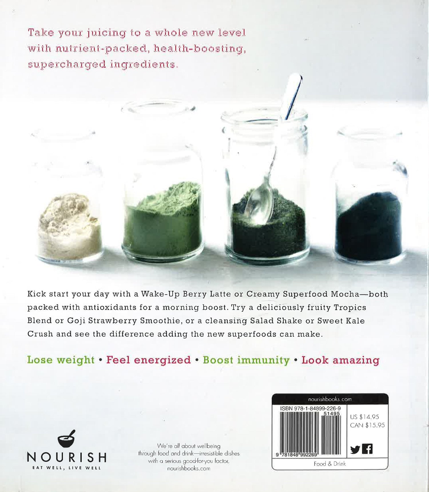 Looking for a simple way to boost your energy levels, improve your health, lose weight and feel fantastic? Supercharged Juice & Smoothie Recipes is an amazing collection of feel-good drinks using the latest range of superfoods to nourish and revitalize your body. Taking juicing to a whole new level with nutrient-packed, health-boosting ingredients, Bailey uses an array of ingredients including sea vegetables, herbs, teas, and tinctures to help you supercharge your juice regimen. Using extra boosters in juices and smoothies is a simple, effective way to get your body into shape fast, providing fuel and nutrients for a transformed body and mind. Bailey (author of The Juice Diet) also provides a handy reference section at the back to help you quickly find recipes to lose weight, maximize energy levels, boost your immunity, combat aging and look amazing. There is evan a 3-day power-charged Superfood Juice Diet Plan to set you on your way to looking fabulous as well as feeling great. *This book may have remainder mark*