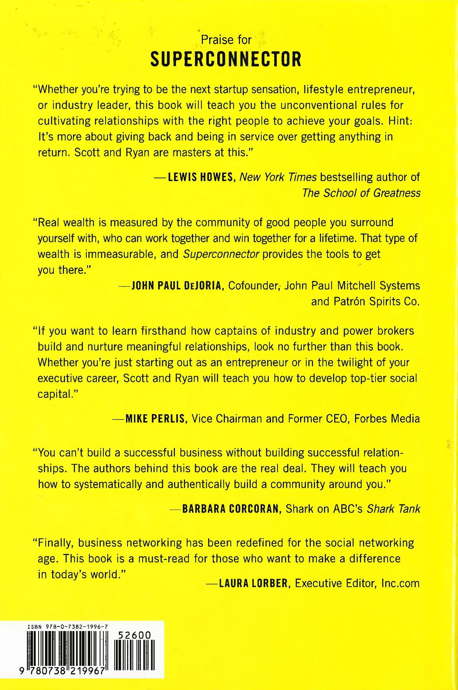 Superconnectors are a new category of tradespeople born out of the social media era. They are highly valuable community-builders who make things happen through their keen understanding and utilization of social capital. They don't just meet people for business-card collection's sake; they understand the power of relationship-building, problem-solve by connecting the dots at high levels, and purposefully cause different worlds and communities to interact with the intention of creating mutual value. Superconnector shows readers why it's time to leave their bad networking habits in favor of a new three-pronged Vision-Execution-Profiting approach. It presents instructive anecdotes and winning strategies from a who's who roster of superconnectors, revealing how to systematically manage a meaningful professional community and maximize its value. Superconnector tactics include: * Defining Your Vision * Thinking Differently * Embracing a Profit Mindset * Attracting Inbound Opportunities