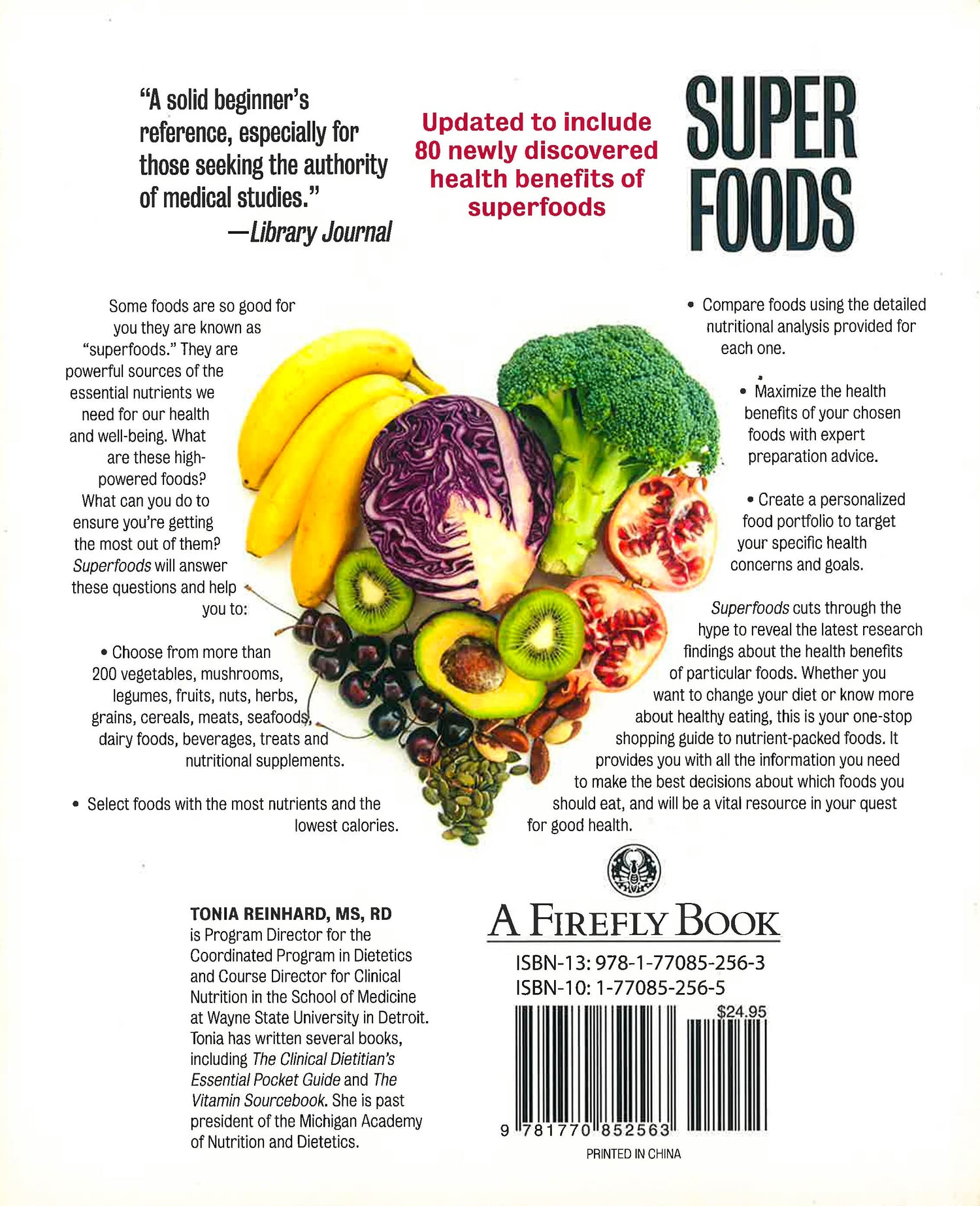Praise for the first edition: "A solid beginner's reference, especially for those seeking the authority of medical studies." -- "Library Journal" "Recommended." -- "American Reference Books Annual 2010" Over 80 superfood entries updated with the latest health research discoveries. Since this comprehensive reference was first published, major studies have reinforced the importance and potential value of obtaining nutrients from foods rather than supplements. Many of the studies have discovered previously unknown health benefits of great significance, such as a reduced risk for dementia with the consumption of blueberries. In all, over 80 entries in this new edition have had their "Healthy Evidence" section updated to reflect the outcome of major reputable medical studies, including: Garlic supplements are beneficial for cirrhosis patients Cherries will lessen the frequency of gout attacks Soybean consumption is effective in lowering cholesterol Kale inhibits the growth of human colon cancer cells Studies have also confirmed that Chia seed is a superfood for its protective effects against heart disease. "Superfoods" is organized in broad categories: Vegetables; Mushrooms; Legumes; Fruits; Nuts and Oils; Herbs and Spices; Grains; Meat, Seafood, and Dairy; Beverages and Treats; and Nutritional Supplements. Each entry notes the food's origin, its seasonal availability and nutritional values, tips on how to add it to an eating plan and how to optimize its nutrients and phytochemicals. Nutrient breakdowns are derived from the USDA's Nutrient Database, and "The Healthy Evidence" refers to published peer-reviewed studies available from the US National Library of Medicine and National Institutes of Health database. The book closes with Nutritional Tables, a quick-reference guide to the nutritional content of the "superfoods" listed in the book. Star ratings indicate the most notable nutrients in each superfood. With "Superfoods," readers will get the most nutritional bang for their buck.