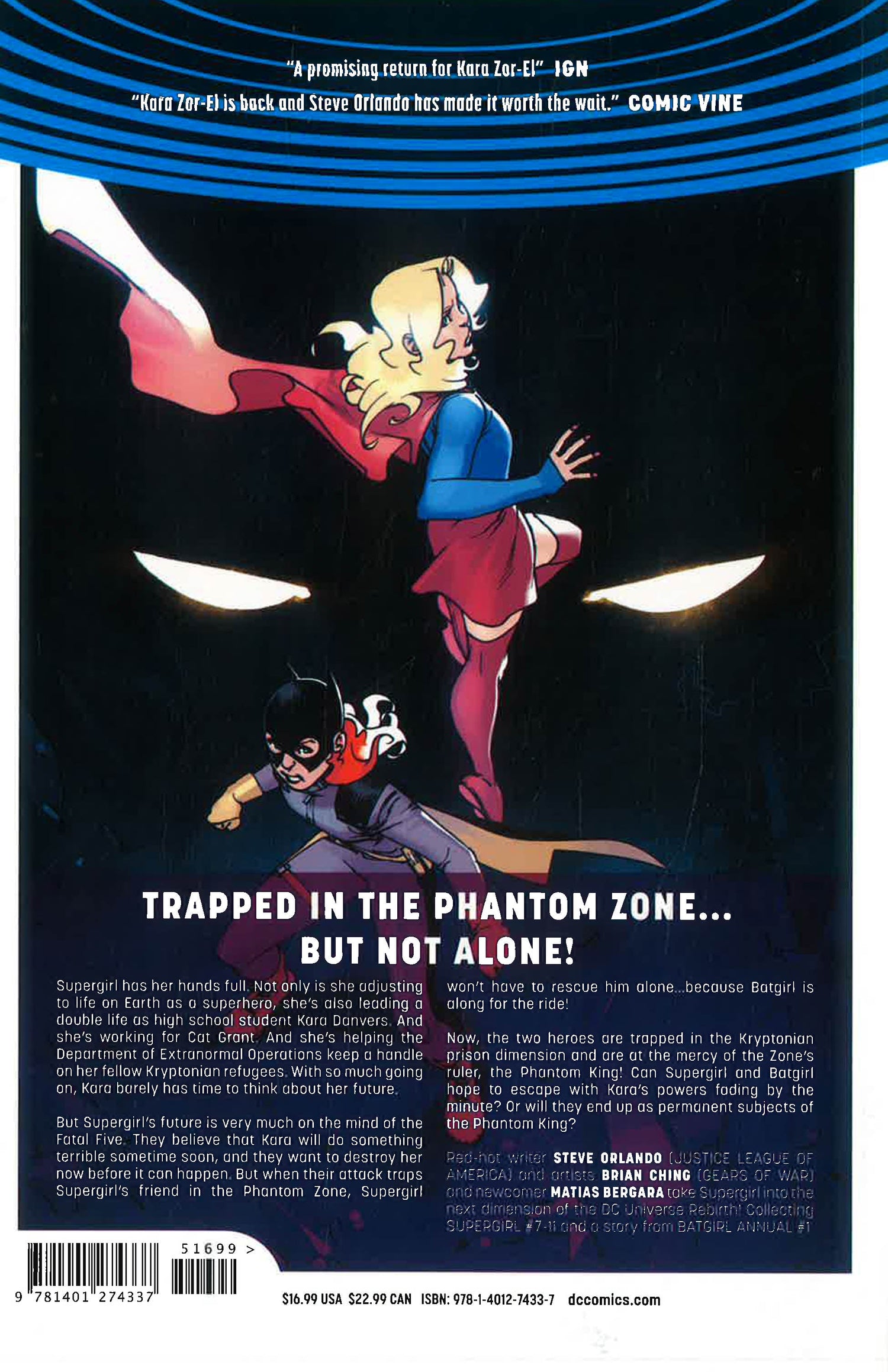 Red-hot writer Steve Orlando (JUSTICE LEAGUE OF AMERICA) and artists Brian Ching (GEARS OF WAR) and new comer Matias Bergara (AMERICAN VAMPIRE) take Supergirl into the next dimension of the DC Universe Rebirth!