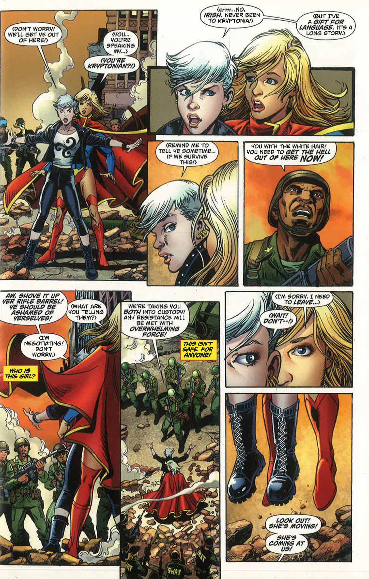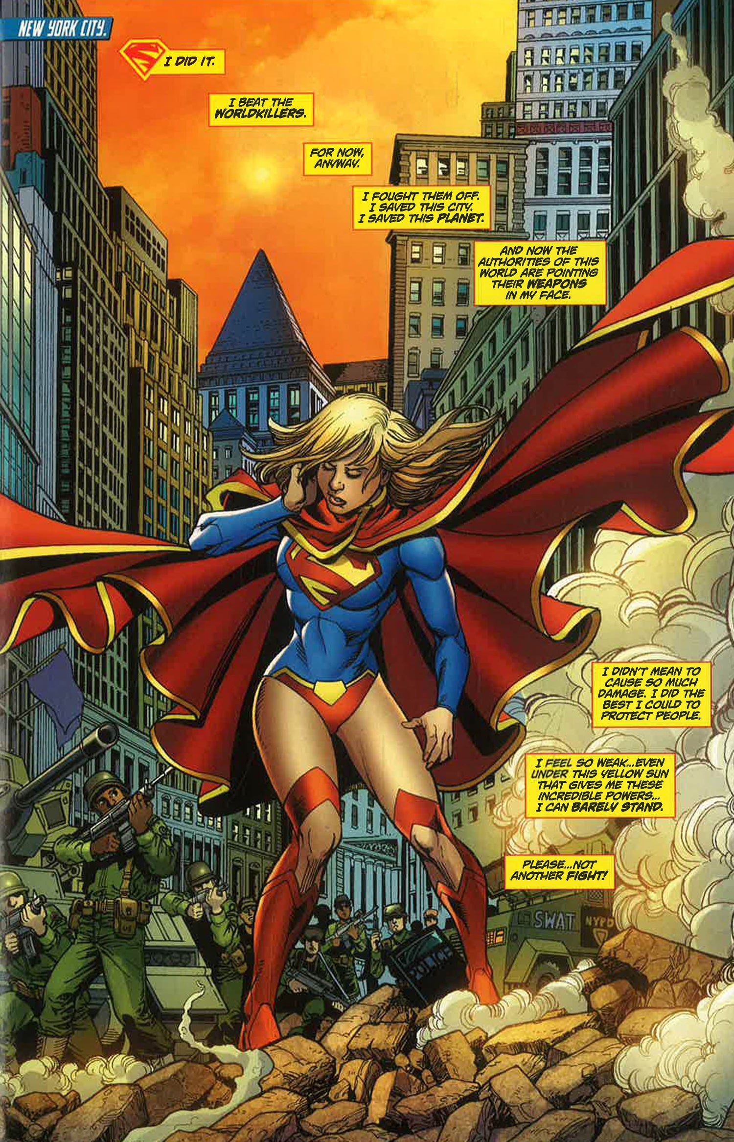 Unlike her cousin Superman, Supergirl arrived on Earth from her dead home planet of Krypton fully grown, fully powered and totally confused. Unable to speak anything but her native tongue of Kryptonese, unsure of how she arrived on Earth, and distrustful of the now-adult Superman, Supergirl truly is alone in the world.