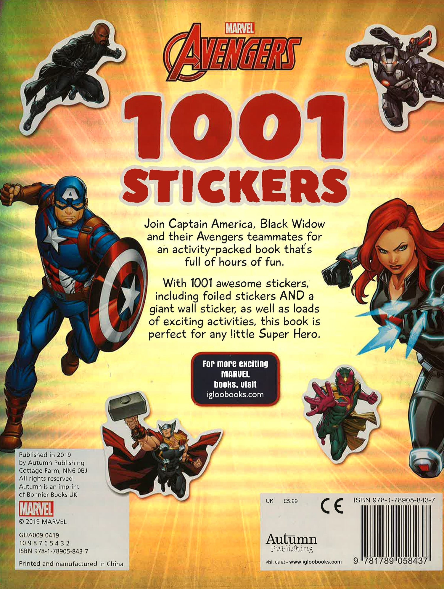 Join Captain America, Black Widow and their Avengers teammates for an activity-packed book that's full of hours of fun. With 1001 awesome stickers, including foiled stickers AND a giant wall sticker, as well as loads of exciting activities, this book is perfect for any little Super Hero.