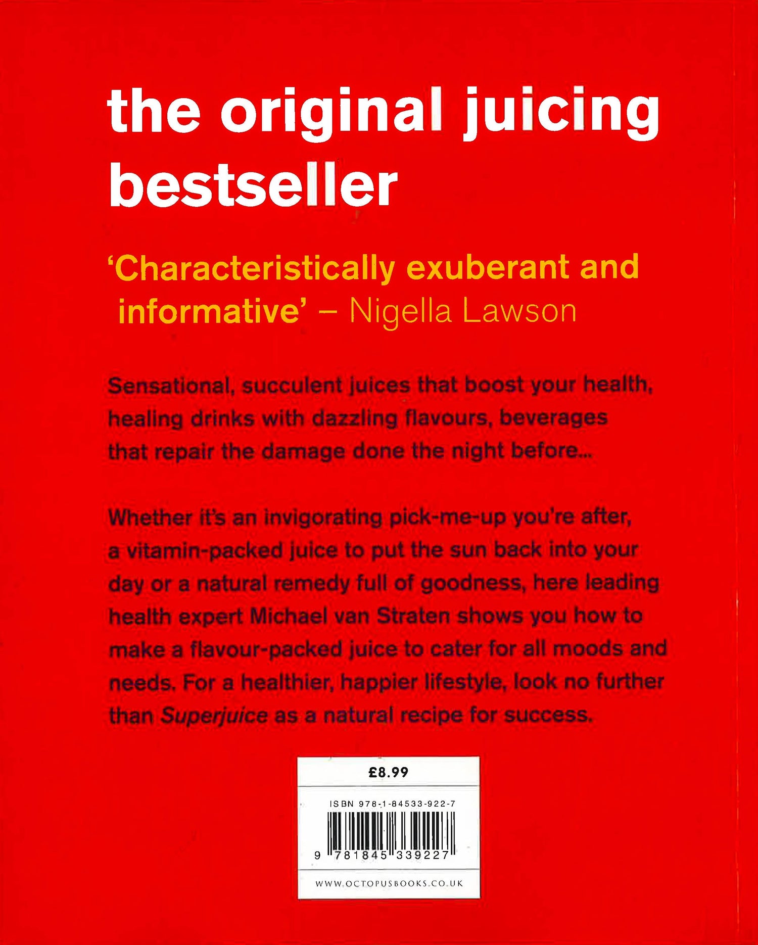Sensational, succulent juices that boost your health, healing drinks with dazzling flavours, beverages that repair the damage done the night before...Whether it's an invigorating pick-me-up you're after, a vitamin-packed juice to put the sun back into your day, or a natural remedy full of goodness, here leading health expert Michael van Straten shows you how to make a flavour-packed juice to cater for all moods and needs. For a healthier, happier lifestyle, look no further than Superjuice as a natural recipe for success.