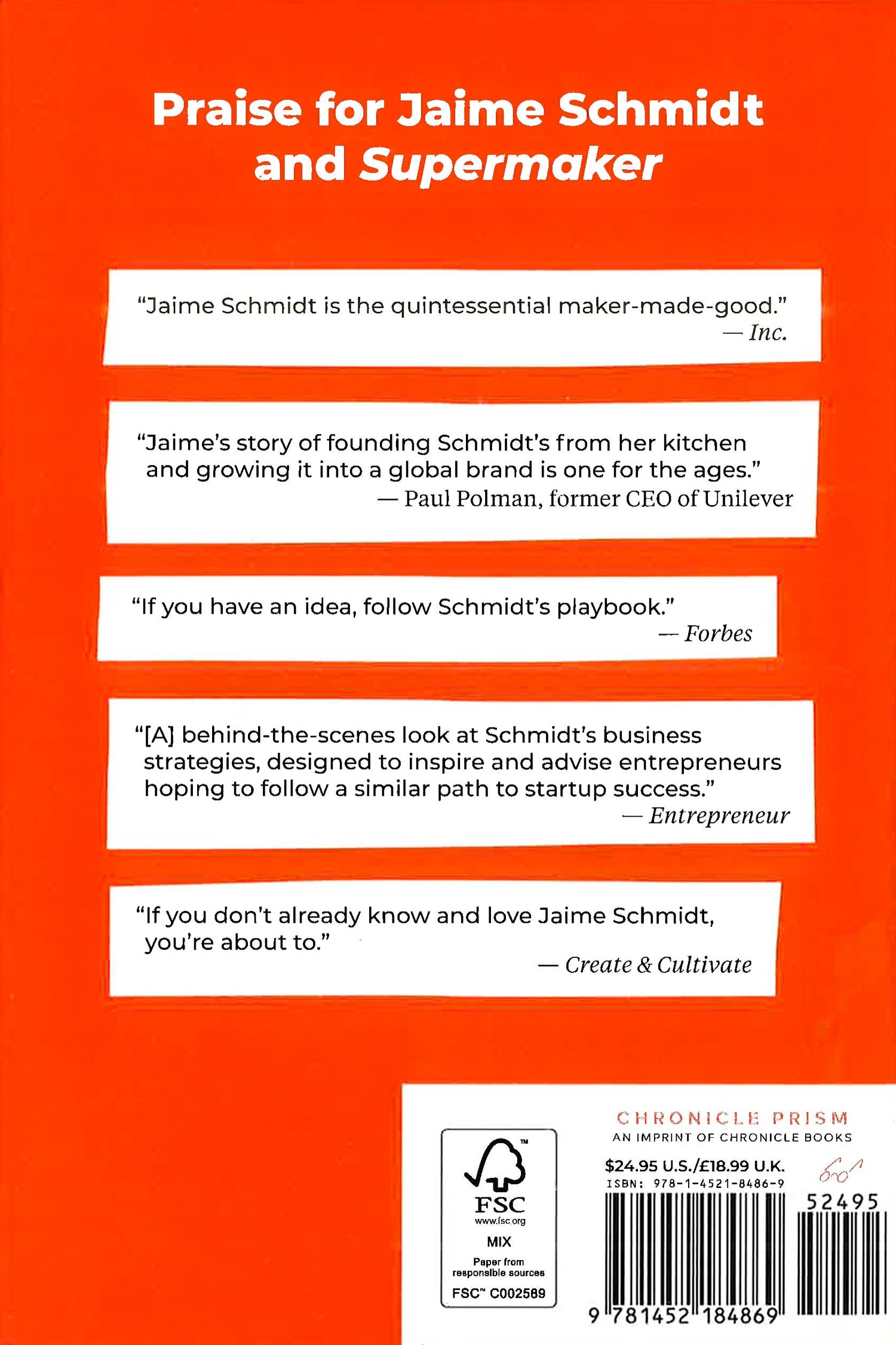 In just seven years, Jaime Schmidt went from making natural products in her Portland, Oregon kitchen to turning her brand into a household name and selling her company in a nine-figure acquisition. Supermaker is her guide to business and career development on your own terms. Through unfiltered storytelling and instructive takeaways, the acclaimed entrepreneur, founder of Schmidt's Naturals, and icon of the Maker Movement shares how you too can start or grow your own business with her secrets on marketing, sales growth, product development, customer engagement, scaling operations, and partnerships. Following Jaime's journey from market stand to global brand, readers will take away: * The keys to establishing a financially successful business for entrepreneurs and professionals ready to go from maker to magnate. * Tactical approaches to branding, PR, sales, marketing, culture development, and team management. * Candid advice and storytelling from an industry disruptor and proven executive. Following her growth from kitchen to acquisition, Supermaker is a riveting mix of inspiration, the honest airing of mistakes, and indispensable instruction. * A go-to guide for the passion-to-profit journey. * The perfect read for aspiring entrepreneurs, makers, creatives, and anyone with an interest in selling their products online, retail strategy, or digital marketing. * Great for anyone who enjoyed Start Something That Matters by Blake Mycoskie, Craft, Inc: Turn Your Creative Hobby into a Business by Meg Mateo Ilasco, and The Girls' Guide to Starting Your Own Business: Candid Advice, Frank Talk, and True Stories for the Successful Entrepreneur by Caitlin Friedman.