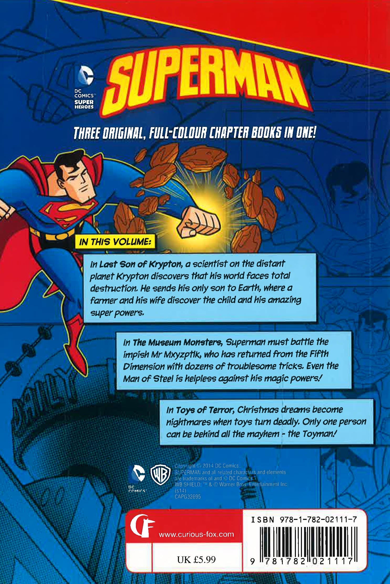 This colourful, action-packed chapter book contains 3 great Superman adventures: Last Son of Krypton, The Museum Monsters and Toys of Terror. In Last Son of Krypton, a scientist on Krypton sends his only son into outer space before the planet explodes. A farmer discovers the child and the strange powers that lie in the hands of this last son of Krypton. In The Museum Monsters, the impish Mr Mxyzptlk has returned from the Fifth Dimension with dozens of troublesome tricks. Even the Man of Steel is helpless against his magic powers! In Toys of Terror, Christmas dreams become nightmares when toys turn deadly. Only Superman can save Lois Lane and a group of children trapped on a runaway festive parade float!