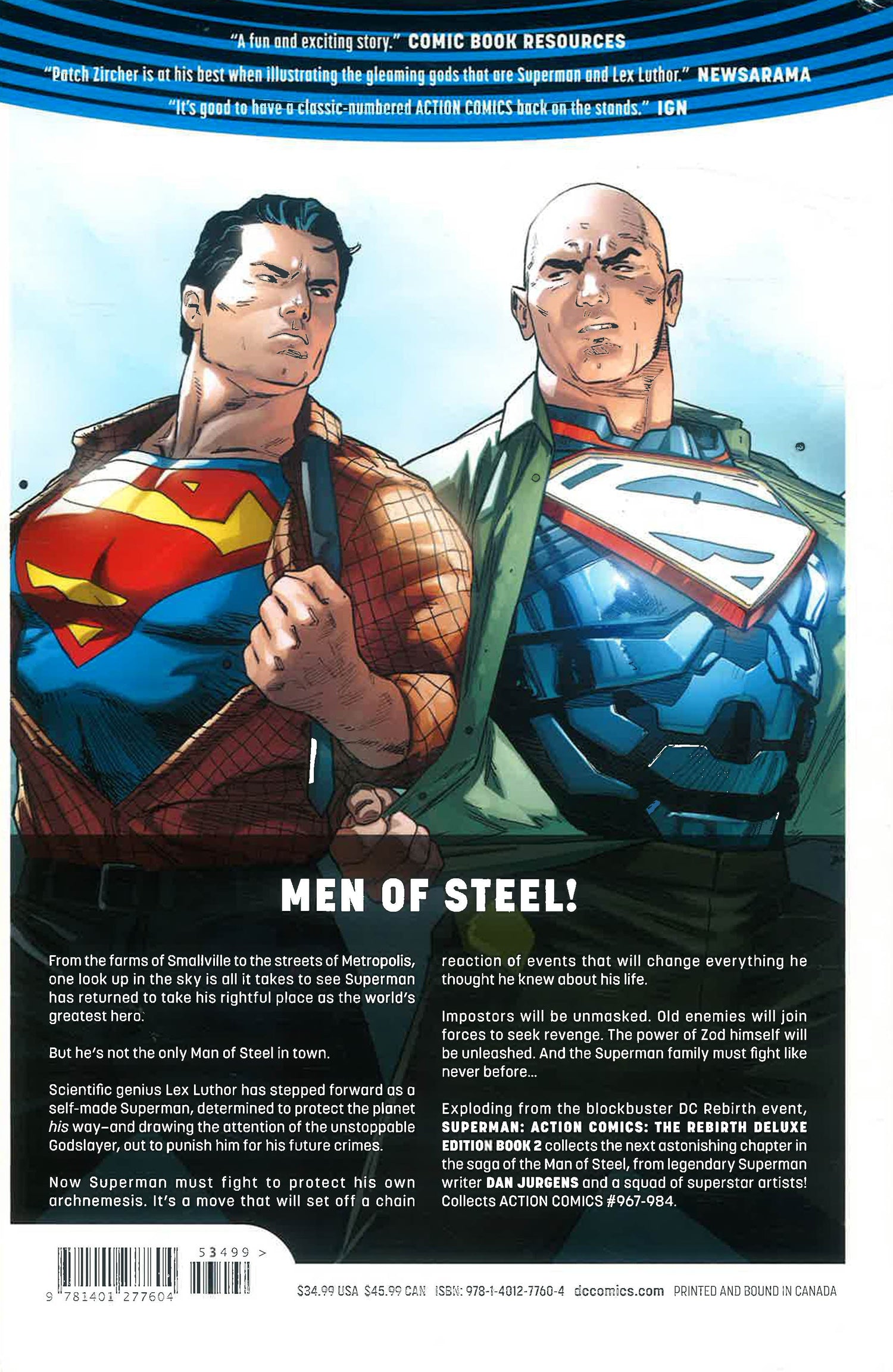 ACTION COMICS: THE REBIRTH DELUXE EDITION BOOK TWO collects the next astonishing chapter in the saga of the Man of Steel, from fan-favorite Superman writer Dan Jurgens.
