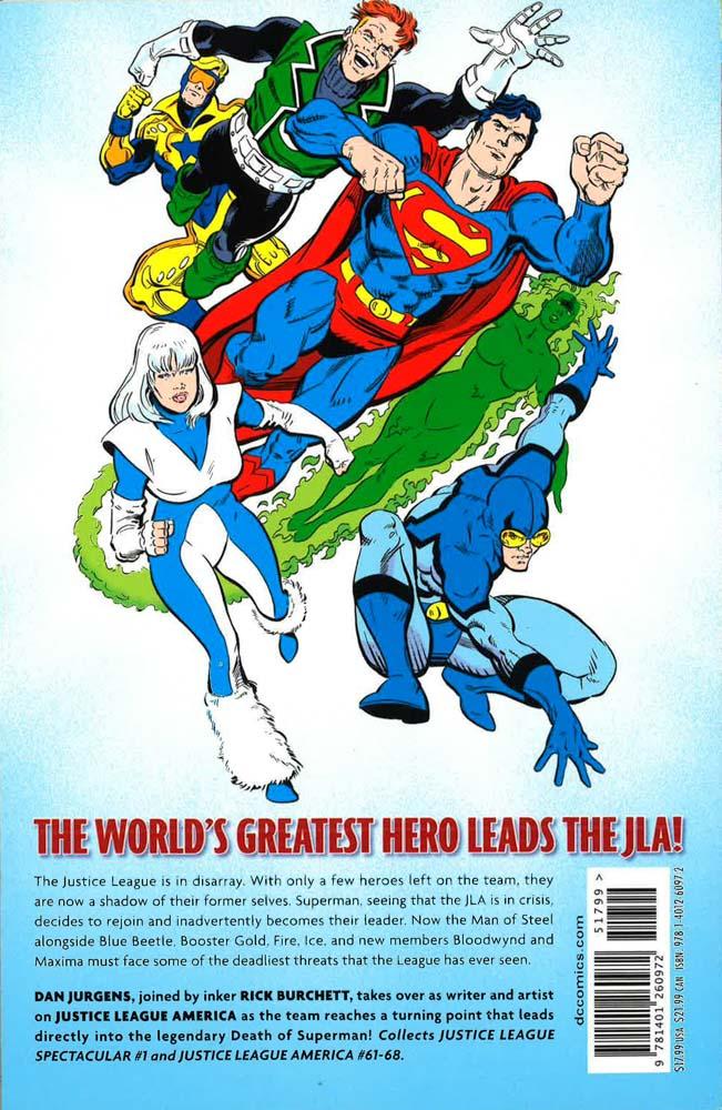Dan Jurgens takes over as writer and artist on the classic JUSTICE LEAGUE OF AMERICA - leading directly into the legendary DEATH OF SUPERMAN!The Justice League of America is in disarray. With only a few heroes left on the team, they are now a shadow of their former selves. Superman, seeing that the JLA is in crisis, decides to rejoin and inadvertently becomes their leader. Now the Man of Steel?alongside Blue Beetle, Booster Gold, Fire, Ice and new members Bloodwyn and Maxima?must face some of the deadliest threats that the League has ever seen.Collects JUSTICE LEAGUE SPECTACULAR #1 and JUSTICE LEAGUE OF AMERICA #60-68.