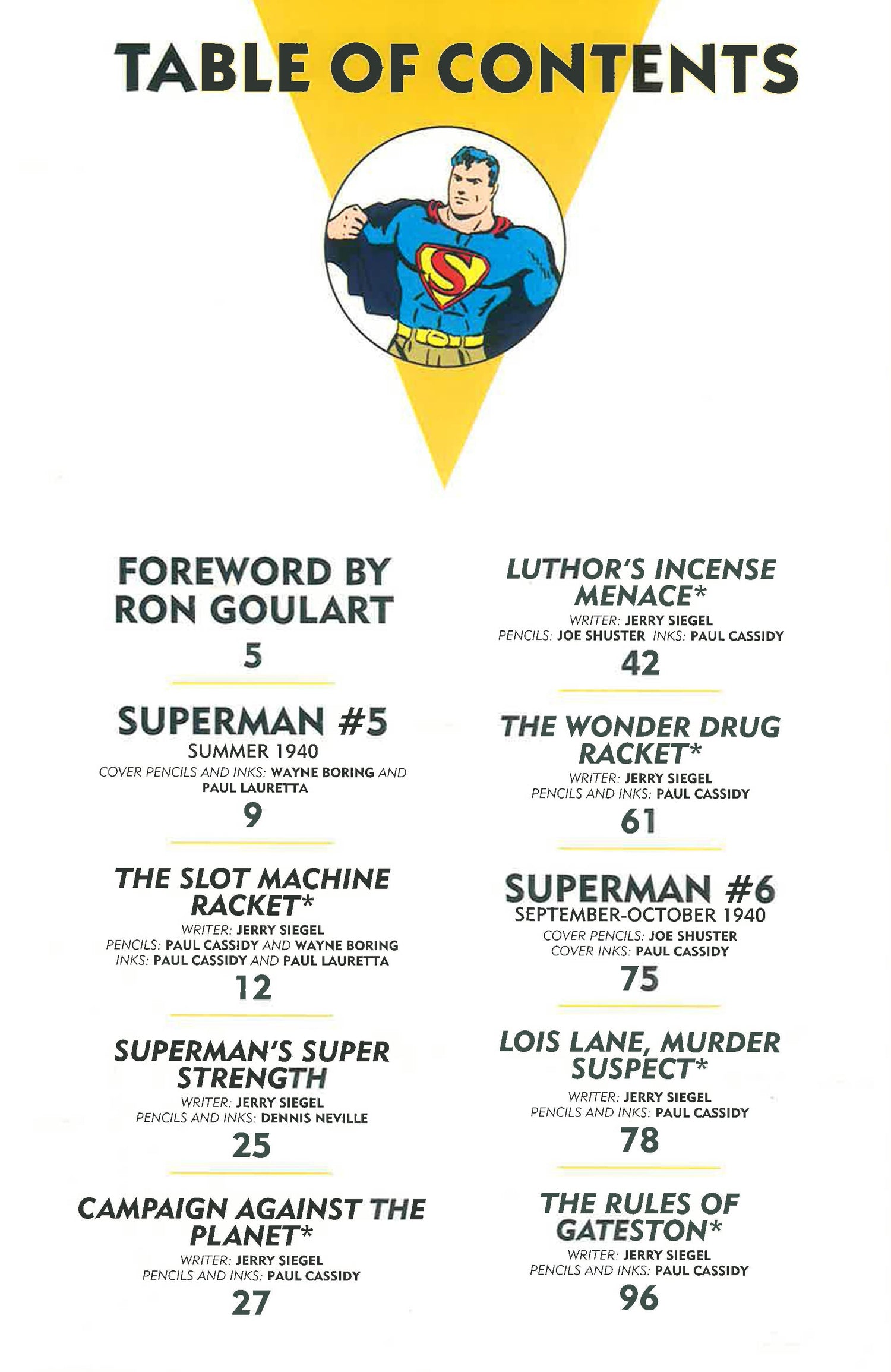 Offers early Super-Man stories in which the Man of Steel deals with corrupt officials, blackmarketeers, and costumed villains with occasional help from Lois Lane.