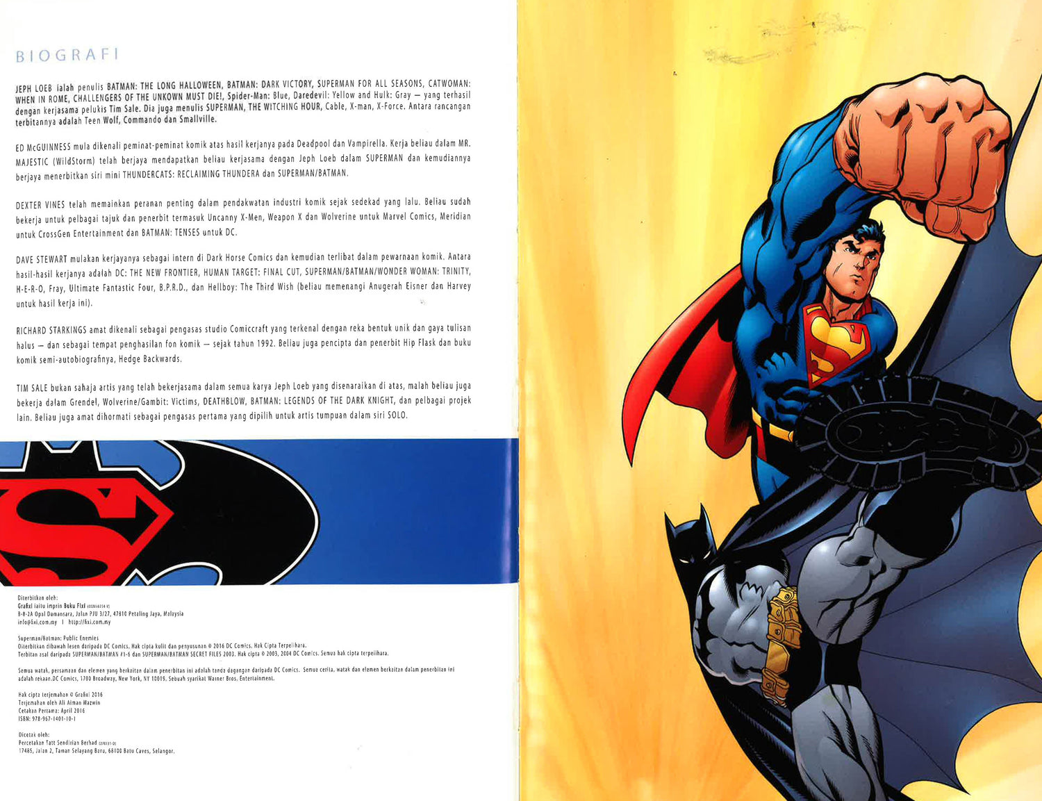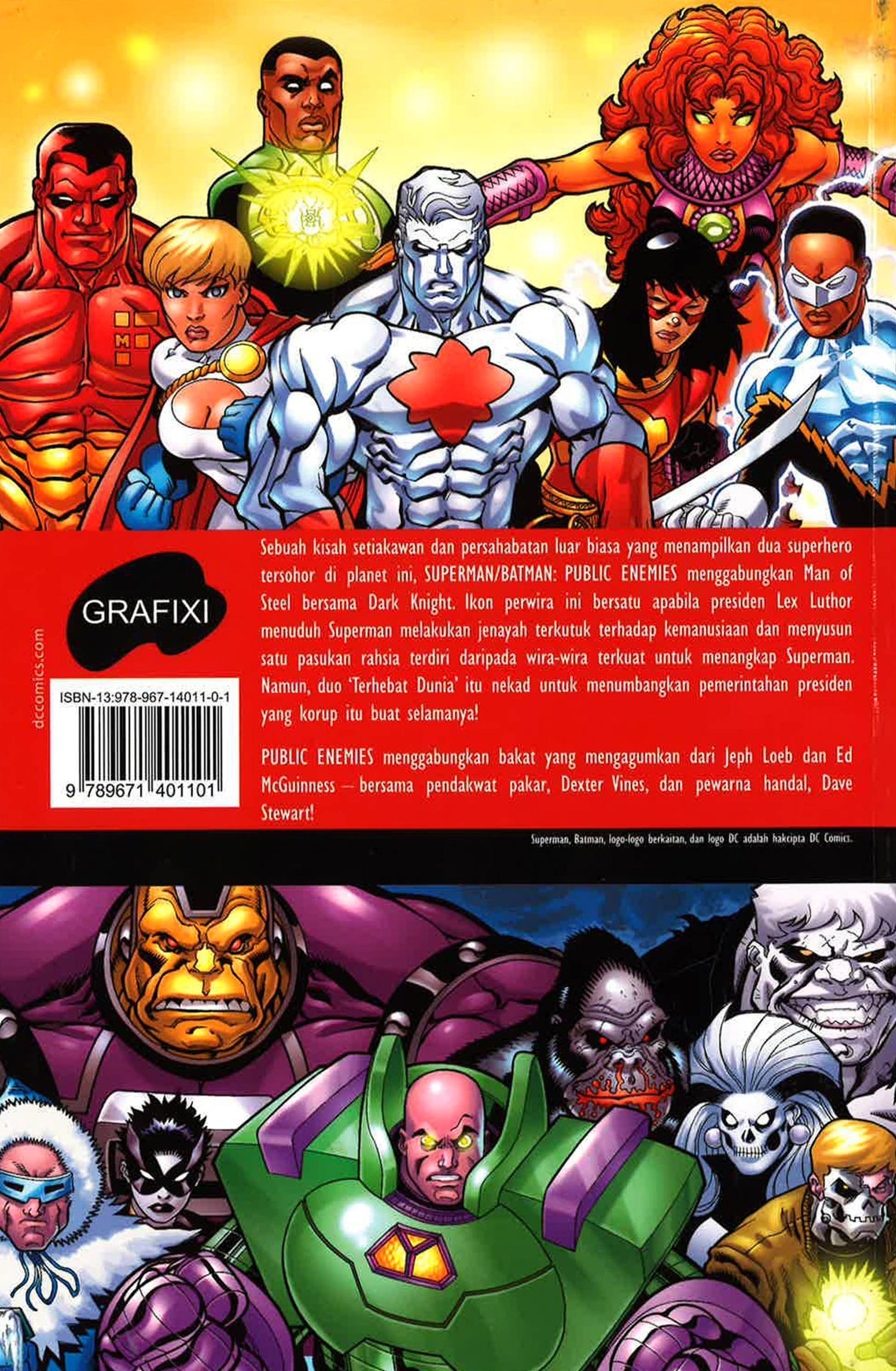 Sebuah kisah setiakawan dan persahabatan luar biasa yang menampilkan dua superhero tersohor di planet ini, SUPERMAN/BATMAN: PUBLIC ENEMIES menggabungkan Man of Steel bersama Dark Knight. Ikon perwira ini bersatu apabila presiden Lex Luthor menuduh Superman melakukan jenayah terkutuk terhadap kemanusiaan dan menyusun satu pasukan rahsia terdiri daripada wira terkuat untuk menangkap Superman. Namun, dua ‘Terhebat Dunia’ itu nekad menumbangkan pemerintahan presiden yang korup itu buat selamanya!