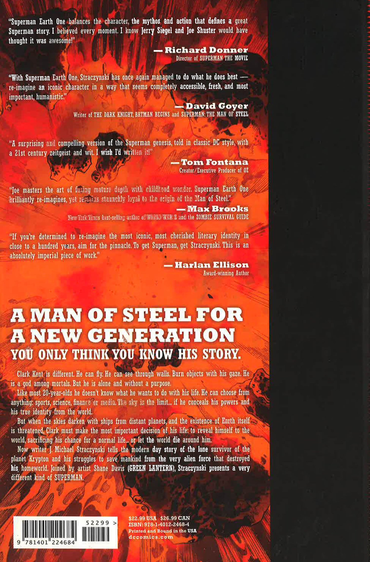 Best-selling, Hugo Award-winning writer J. Michael Straczynski (ThorBabylon 5) and red-hot rising star artist Shane Davis (Green LanternSuperman/Batman) team up for this exciting launch of the Earth One graphic novel series. Set in an all-new continuity re-imagining DC's top heroes, Earth One is a new wave of original, stand-alone graphic novels produced by the top writers and artists in the industry. The groundbreaking new line rockets into effect right here with the Super Hero who started it all – Superman!
