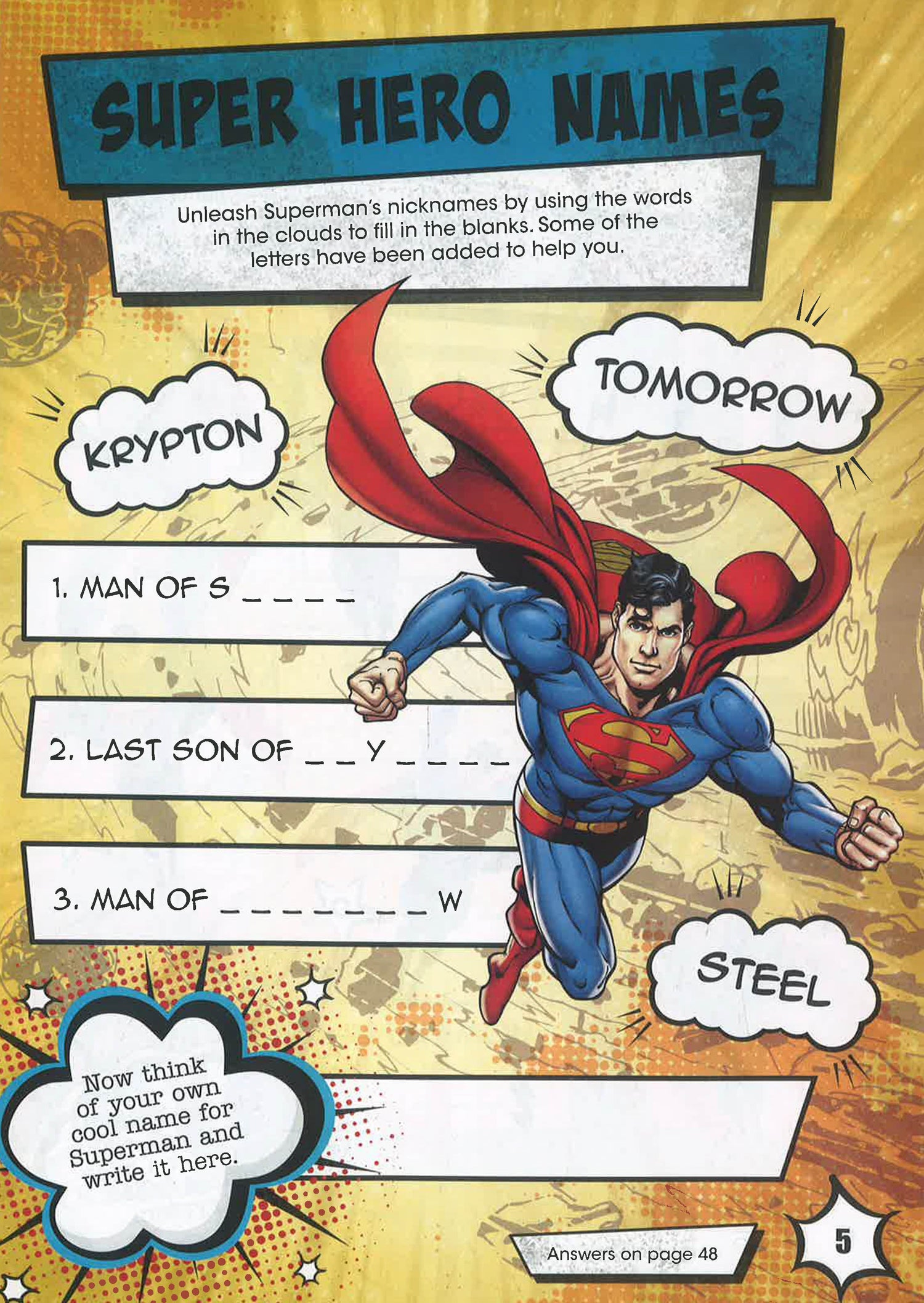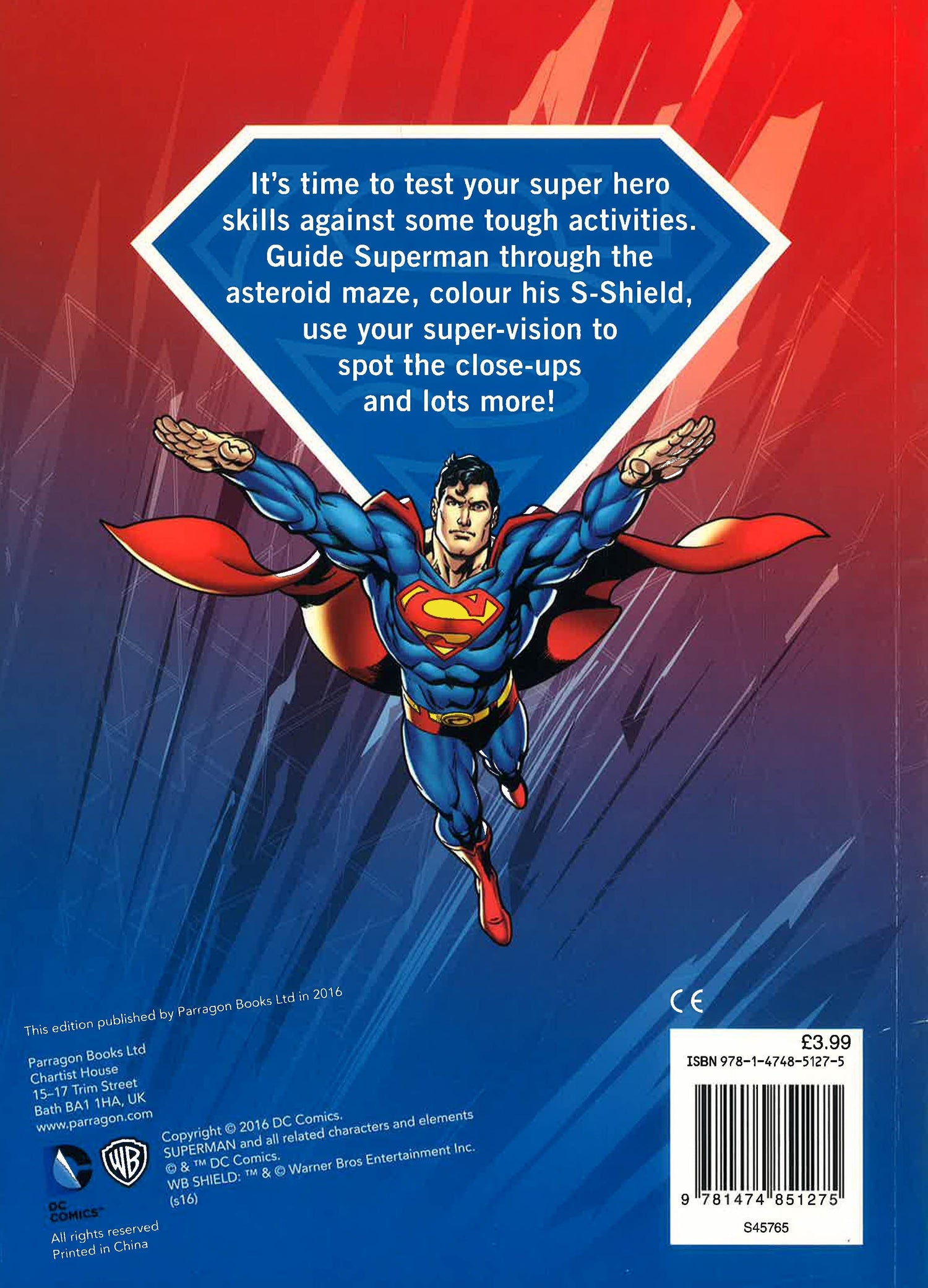 Join Superman, the Man of Steel, for some super heroic activities. Test your super hero skills against some tricky puzzles. Guide Superman through the asteroid maze, colour his S-Shield, use your super vision to spot the close-ups, and lots, lots more! This activity book comes with over 40 awesome activities to finish.