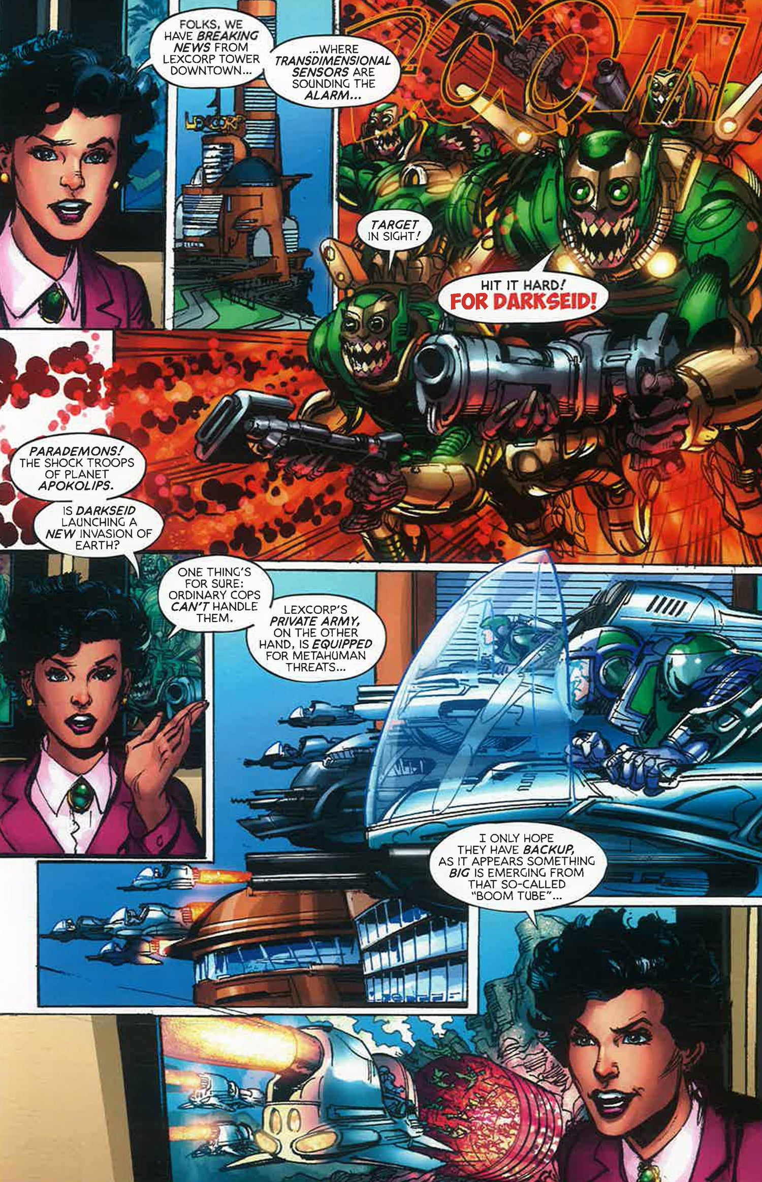 And they’re not the only alien invaders. The minions of Darkseid have returned, bringing terror to our planet once again…and their evil overlord has plans that even the malevolent mastermind Lex Luthor can’t counter.