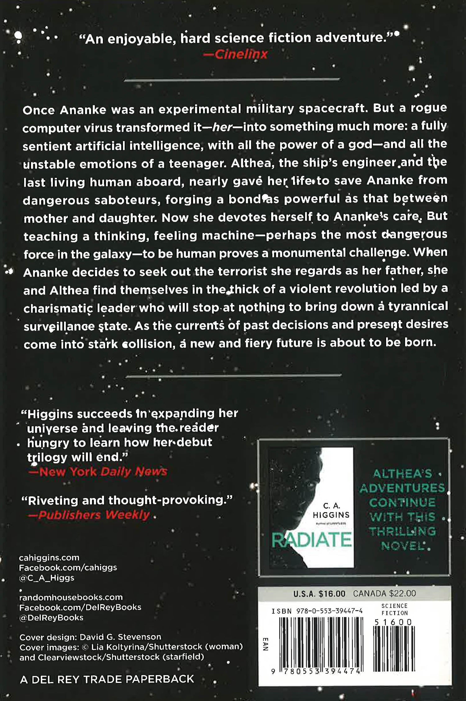C. A. Higgins's acclaimed novel Lightless fused suspenseful storytelling, high-caliber scientific speculation, and richly developed characters into a stunning science fiction epic. Now the dazzling Supernova heightens the thrills and deepens the haunting exploration of technology and humanity--and the consequences that await when the two intersect. Once Ananke was an experimental military spacecraft. But a rogue computer virus transformed it--her--into something much more: a fully sentient artificial intelligence, with all the power of a god--and all the unstable emotions of a teenager. Althea, the ship's engineer and the last living human aboard, nearly gave her life to save Ananke from dangerous saboteurs, forging a bond as powerful as that between mother and daughter. Now she devotes herself completely to Ananke's care. But teaching a thinking, feeling machine--perhaps the most dangerous force in the galaxy--to be human proves a monumental challenge. When Ananke decides to seek out Matthew Gale, the terrorist she regards as her father, Althea learns that some bonds are stronger than mortal minds can understand--or control. Drawn back toward Earth by the quest, Althea and Ananke will find themselves in the thick of a violent revolution led by Matthew's sister, the charismatic leader Constance, who will stop at nothing to bring down a tyrannical surveillance state. As the currents of past decisions and present desires come into stark collision, a new and fiery future is about to be born. Praise for Supernova "An enjoyable, hard science fiction adventure."--Cinelinx "Higgins succeeds in expanding her universe and leaving the reader hungry to learn how her debut trilogy will end."--New York Daily News "Riveting and thought-provoking."--Publishers Weekly Praise for C. A. Higgins's Lightless "Gripping . . . sci-fi with a hint of thriller."--New York Daily News "[A] measured, lovely science-fiction debut [that is] more psychological thriller . . . contained, disciplined, tense . . . The plot is compulsive. . . . Lightless is the first of a planned series, and you can't help looking forward to learning what's next."--The New York Times "The stakes in this story are high--life and death, rebellion and betrayal. . . . Higgins continually ratchets up the tension. . . . This is a debut not to be missed."--Kirkus Reviews (starred review) "A taut, suspenseful read."--Tech Times "Absolutely brilliant . . . science fiction as it is meant to be done."--New York Times bestselling author Seanan McGuire *This book may have remainder mark*
