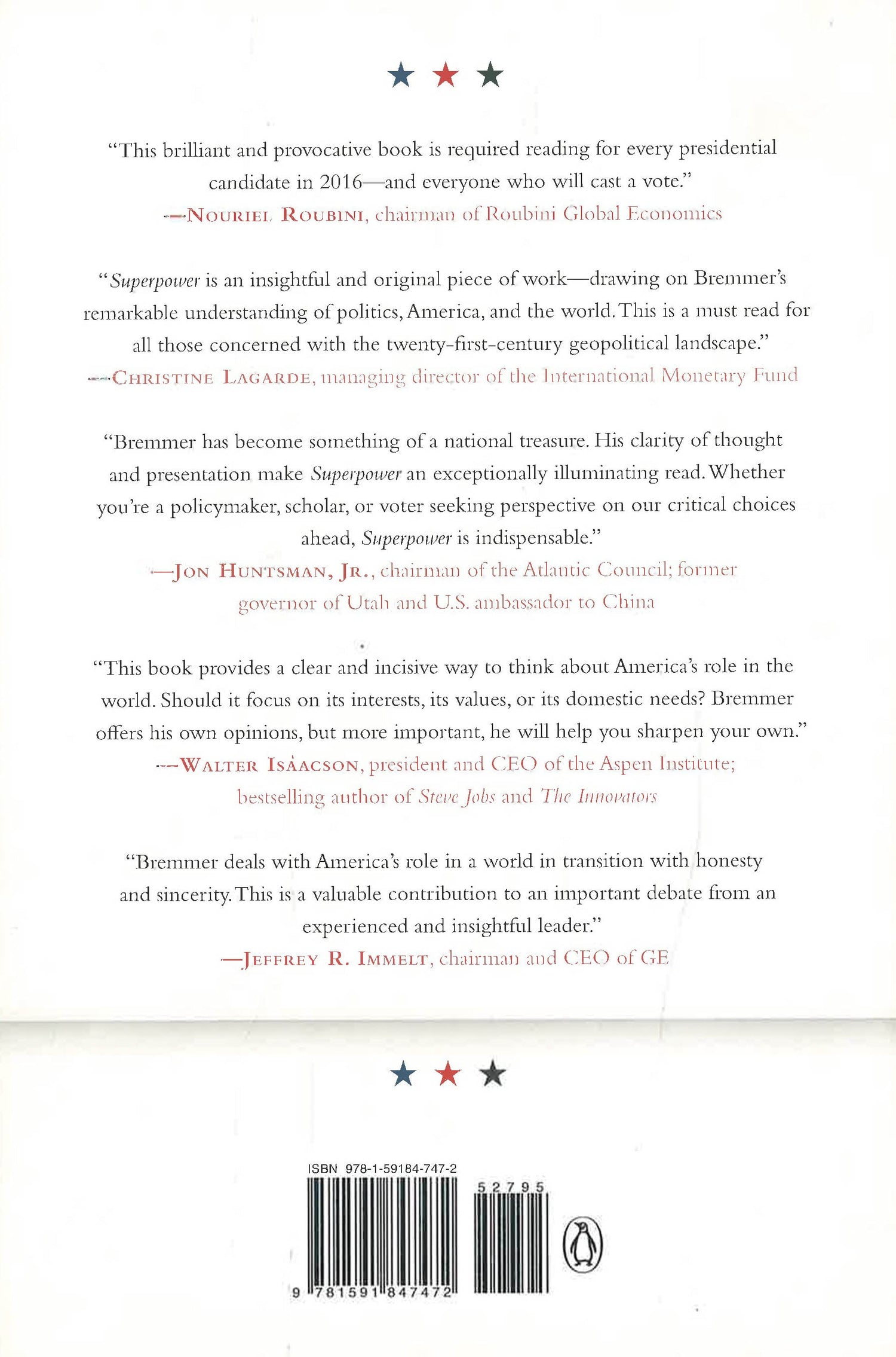 Ian Bremmer argues that Washington's directionless foreign policy has become prohibitively expensive and increasingly dangerous. Since the end of the Cold War, U.S. policymakers have stumbled from crisis to crisis in Afghanistan, Iraq, Iran, Libya, Syria, and Ukraine without a clear strategy. Ordinary Americans too often base their foreign policy choices on allegiance or opposition to the party in power. We can no longer afford this complacency, especially now that both parties are deeply divided about America's role in the world. The next presidential election could easily pit an interventionist Democrat against an isolationist Republican--or the exact opposite. As 2016 rapidly approaches, Bremmer urges every American to think more deeply about what sort of country America should be and how it should use its superpower status. He explores three options: Independent America asserts that it's time for America to declare independence from the responsibility to solve other people's problems. Instead, Americans should lead by example--in part, by investing in the country's vast untapped potential. Moneyball America acknowledges that Washington can't meet every international challenge. With a clear-eyed assessment of U.S. strengths and limitations, we must look beyond empty arguments over exceptionalism and American values.
