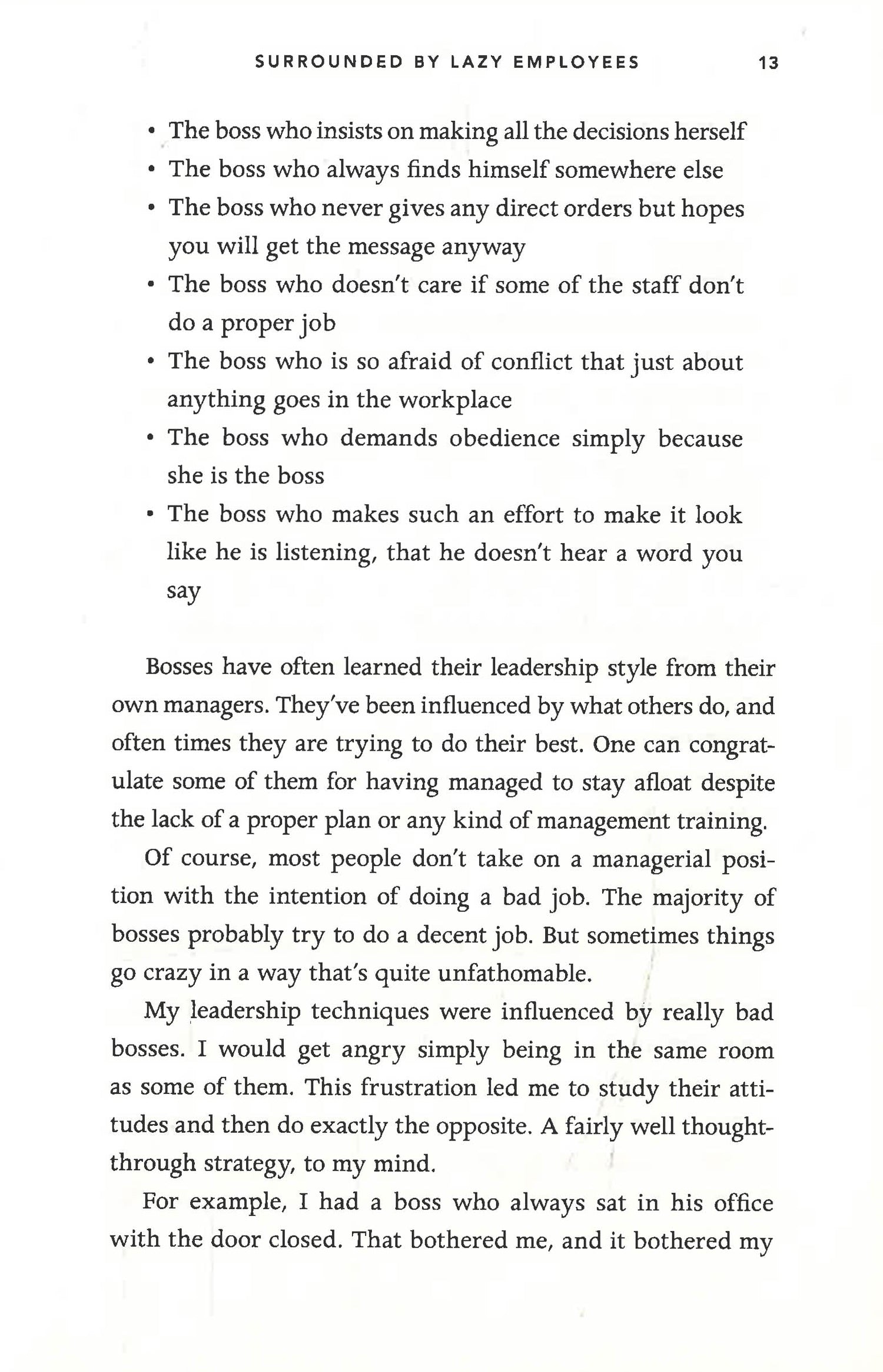 Of course, much as we love to blame our bosses, sometimes management isn't the problem at all. For every bad boss there is also a lazy employee, so Erikson also looks at the issue from a completely different perspective--employees themselves-- and explores why some colleagues frequently underachieve, and what you can do to change this if you're the boss.