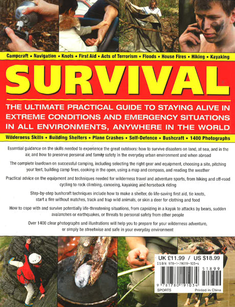 This is the ultimate survival manual, a comprehensive, practical, all-climate, all-terrain guide to the basics of wilderness travel, outdoor living and surviving extreme situations. Substantial sections highlight possible threats and dangers in life, from terrorism, accident, fire, flood or crime, and provide practical solutions and professional teaching for urban prevention, protection and safety strategies. Illustrated with 1400 photographs and illustrations, including step-by-step sequences throughout.