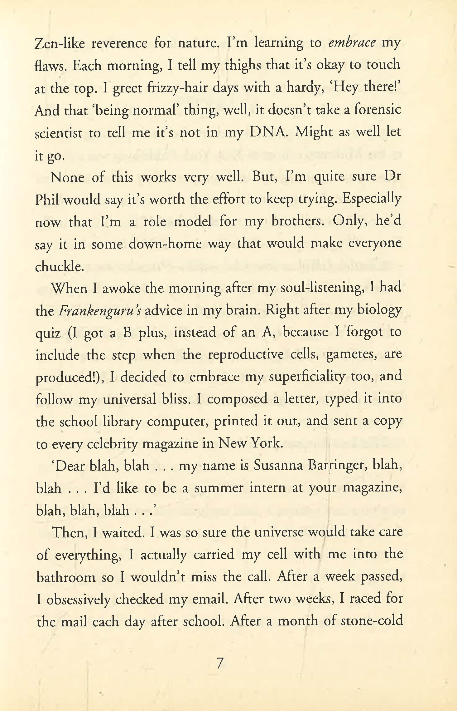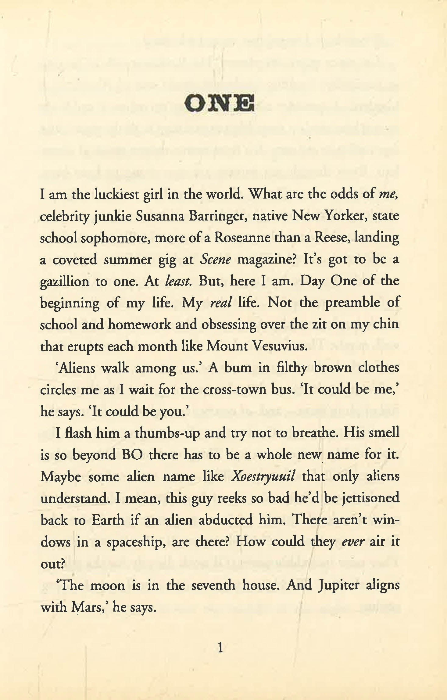 Susanna's walking on air. With some nifty self-promotion using a locked box and a key, she has managed to win herself a work experience placement at a celebrity news magazine in New York. It's her foot into the door of journalism as well as an opportunity to indulge her serious celebrity obsession. But the reality of the job is not quite what she expects. The editor, Nell, treats her like a skivvy, personal shopper and all-round dogsbody and the rest of her fellow office workers aren't much nicer. However the job does have a few perks, such as being sent out celebrity-hunting with the hot magazine photographer, and spotting her heart-throb, Randall Sanders. And when she gets the scoop of the summer, finally Susanna has the chance to shine...