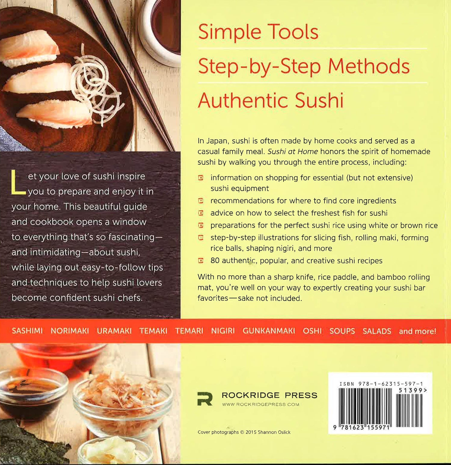 In Japan, sushi is often made by home cooks and served as a casual family meal. Sushi at Home honors the spirit of authentic, homemade sushi by walking you through the entire process, including: information on shopping for essential (but not extensive) sushi equipment recommendations for where to find core ingredients advice on how to select the freshest fish for sushi preparations for the perfect sushi rice using white or brown rice step-by-step illustrations for slicing fish, rolling maki, forming rice balls, shaping nigiri, and more 80 authentic, popular, and creative sushi recipes