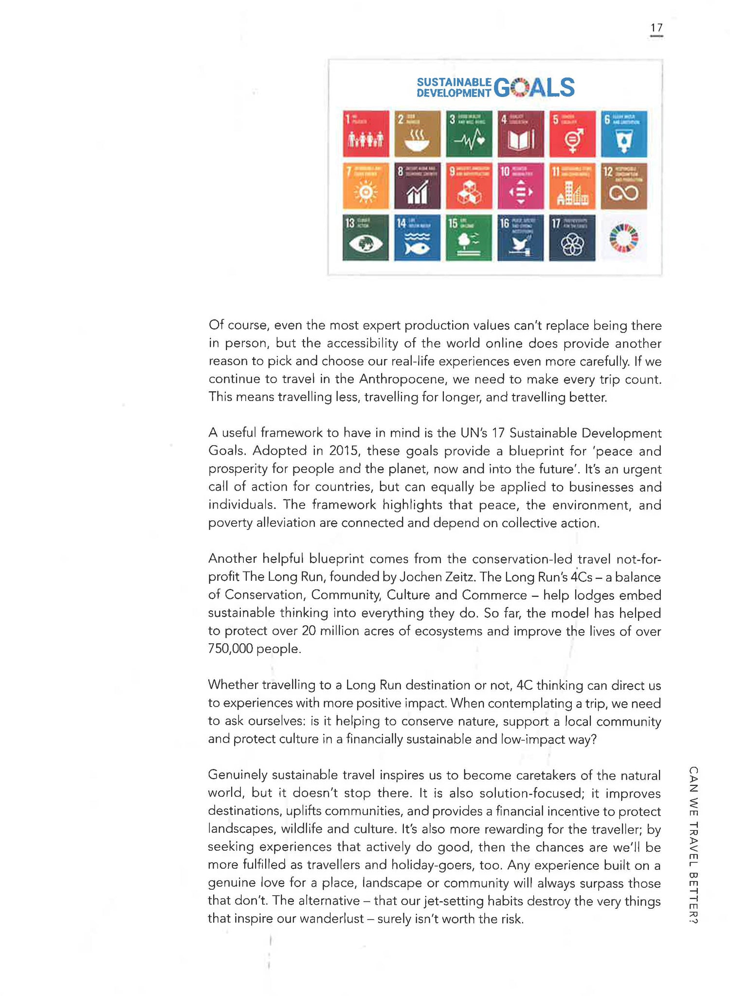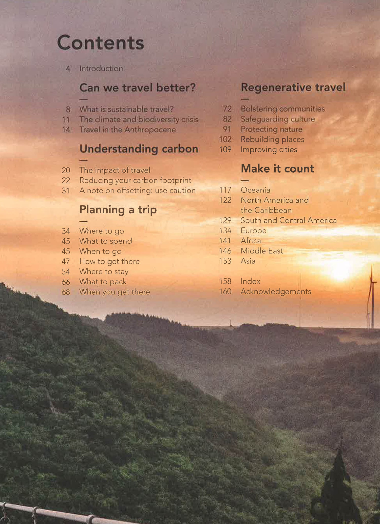 Also included is a guide to regenerative travel experiences, including conservation-minded tours, community-led initiatives, alternative adventures, responsible destinations and green places to stay. A series of interviews feature the experts and unsung heroes of sustainable travel.