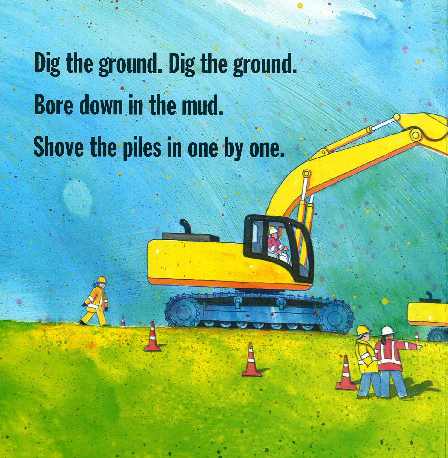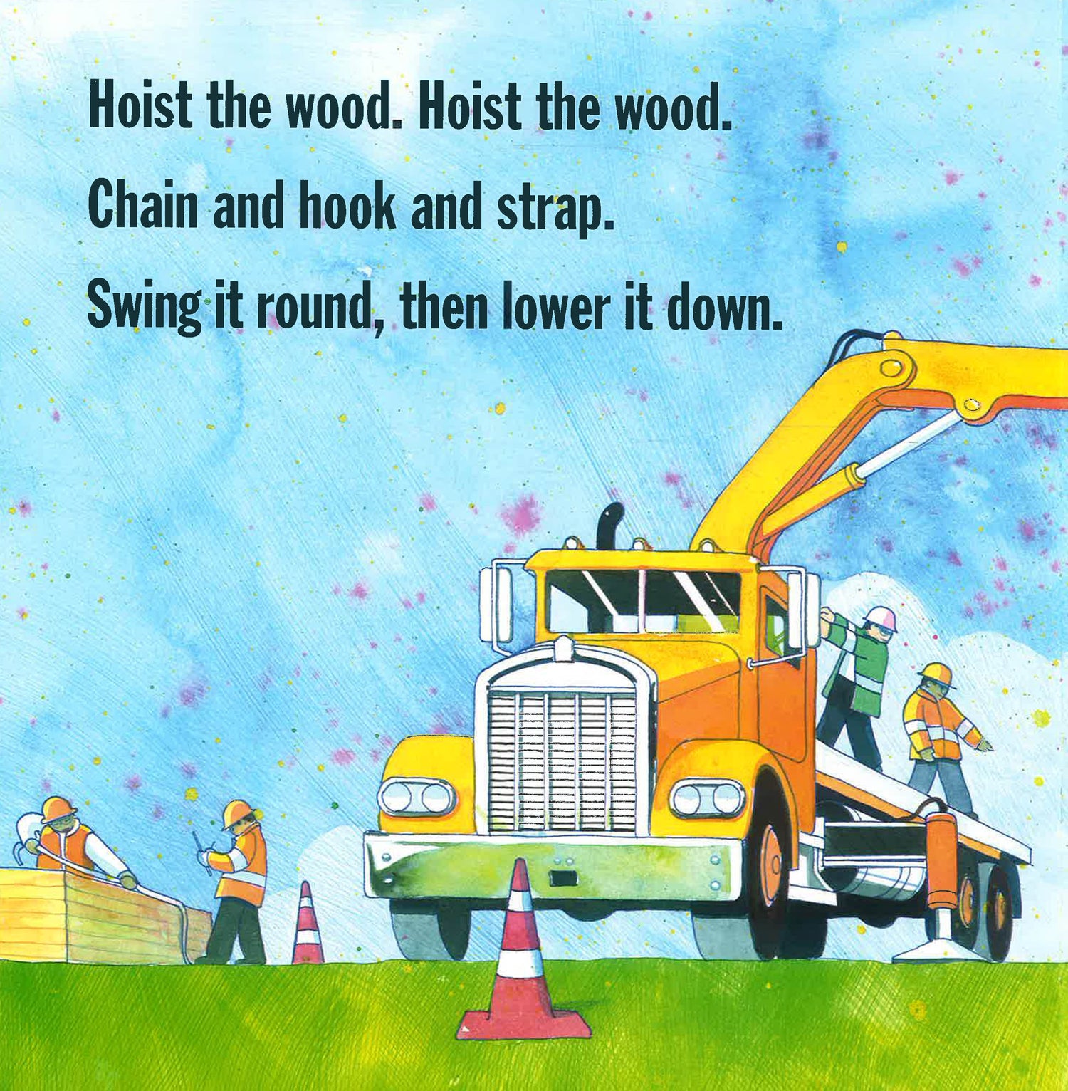 Thonk! Clonk! Clap! The team behind Roadworks and Demolition returns to the building site with another winner for pre-school fans of machines and building sites! Describing all the heaving and hammering involved in building a new library, this book is full of action-packed illustrations, irresistible sound words, and includes a pictorial glossary of all the machines in the book, too.
