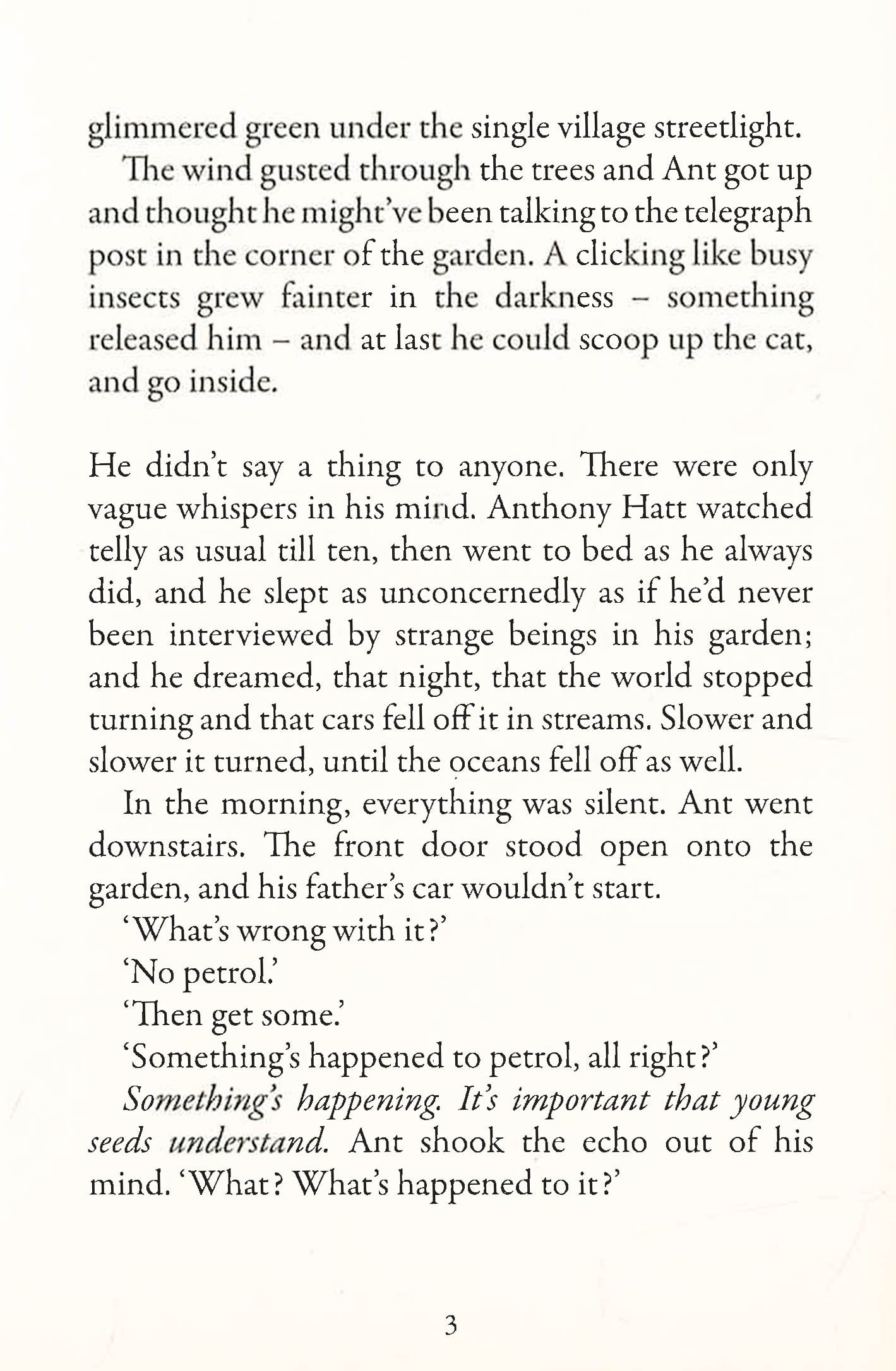 Extraordinary things are happening in Ant's normally humdrum life--everything has come to a standstill because, mysteriously, everyone's petrol has turned to green gel overnight making transport and normal life impossible.
