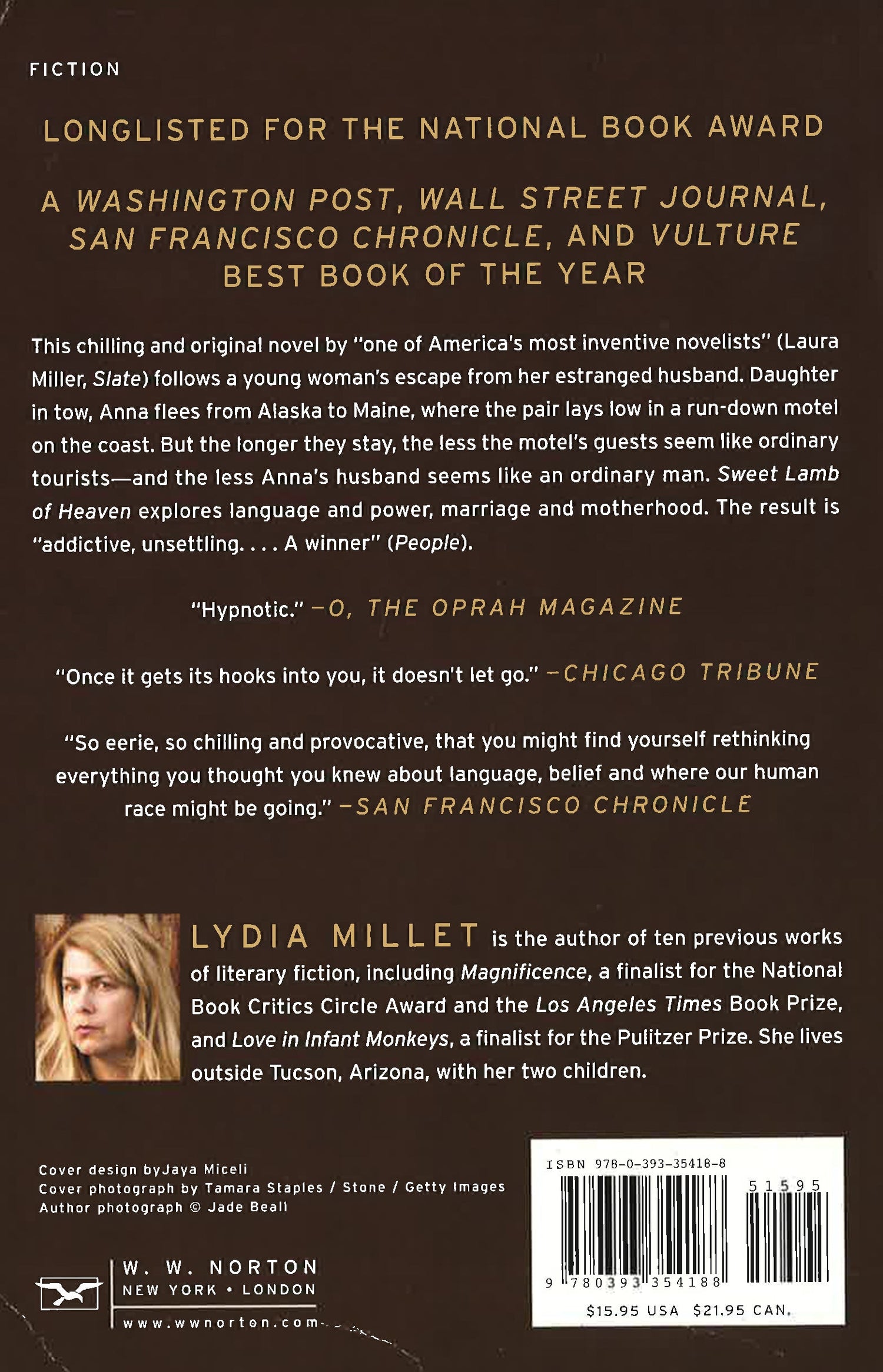 This chilling and original novel follows a young woman's escape from her estranged husband. Daughter in tow, Anna flees from Alaska to Maine, where the pair lays low in a run-down motel on the coast. But the longer they stay, the less the motel's guests seem like ordinary tourists - and the less Anna's husband seems like an ordinary man. Sweet Lamb of Heaven explores language and power, marriage and motherhood.