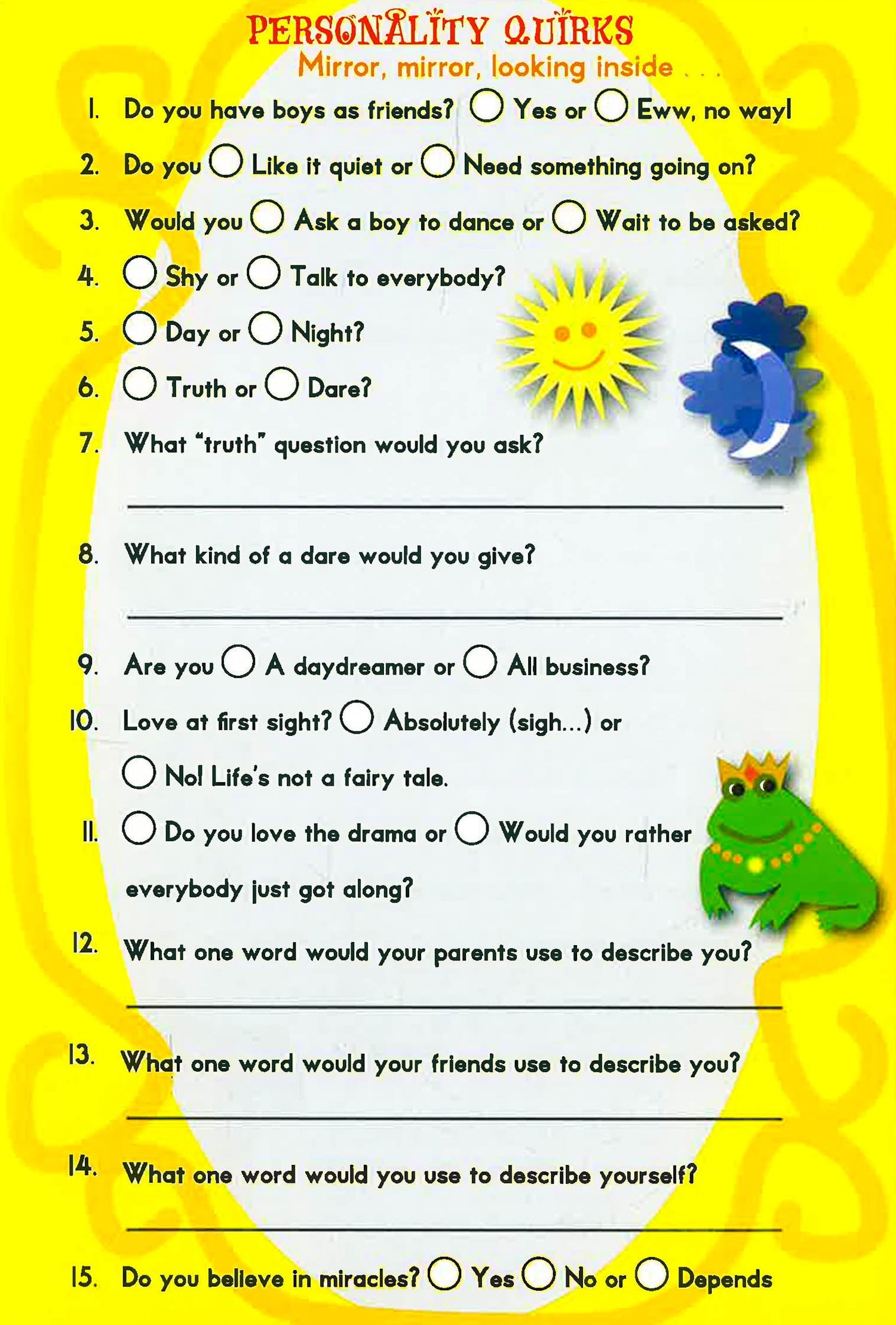 These funky fun-filled quizzes are designed for friends to extract the most intimate secrets from each other. All the important topics are covered from first crushes to most embarrassing moments ever! "Sweet or Spicy" also carries an all new super-special BFF quiz.