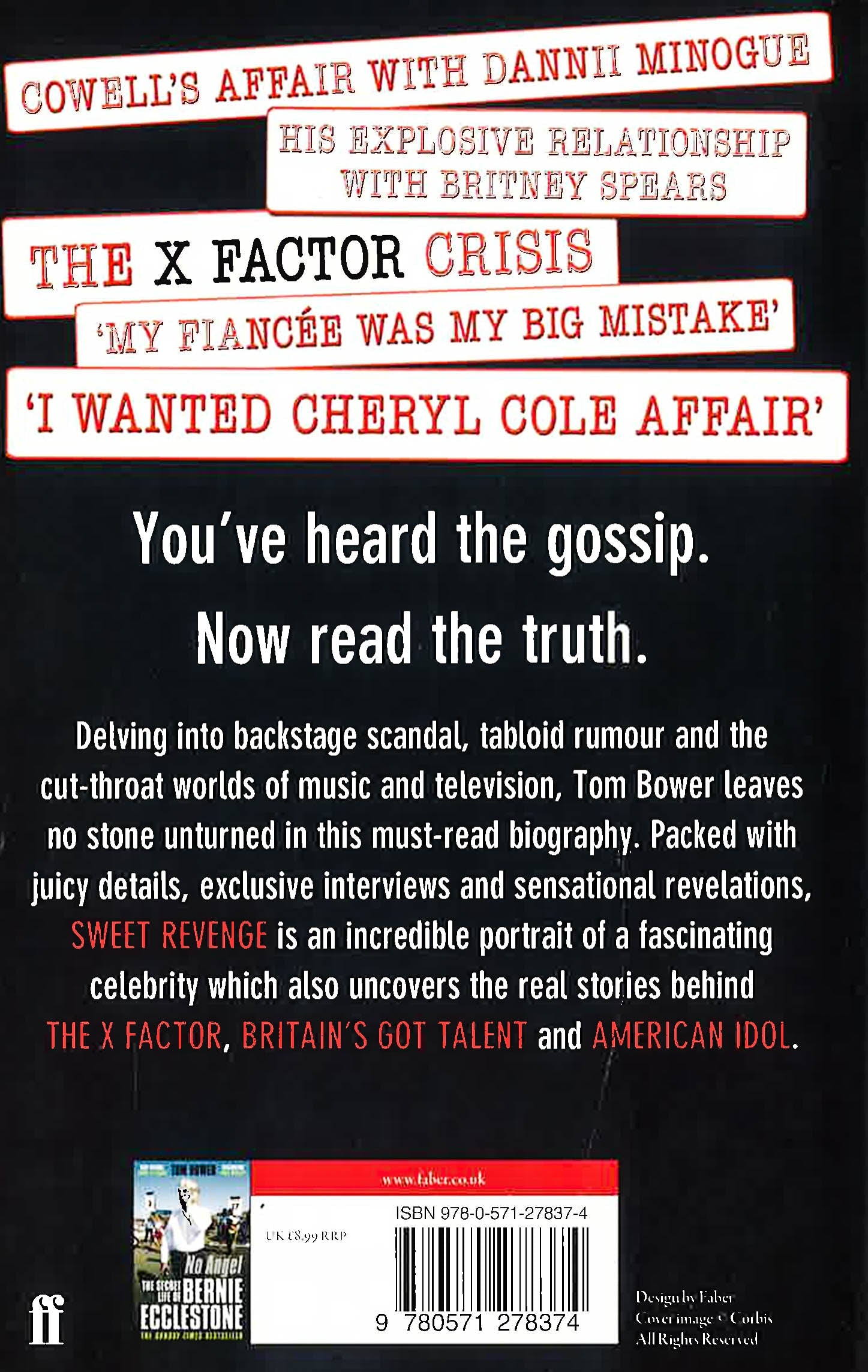Illuminating the life of Simon Cowell and delving into backstage scandal, tabloid rumour and the cut-throat worlds of music and television, Tom Bower leaves no stone unturned in this must-read biography. This is a detailed insider's account of entertainment mogul Simon Cowell's rise to meteoric fame and all of the controversial highs and lows along the way. Packed with juicy details, exclusive interviews and sensational revelations, Sweet Revenge is an incredible portrait of Simon Cowell which also uncovers the real stories behind The X Factor, Britain's Got Talent and American Idol. Tom Bower is the author of nineteen books, including biographies of Robert Maxwell, Mohamed Fayed, Gordon Brown, Richard Branson, Conrad Black and, more recently, Bernie Ecclestone.