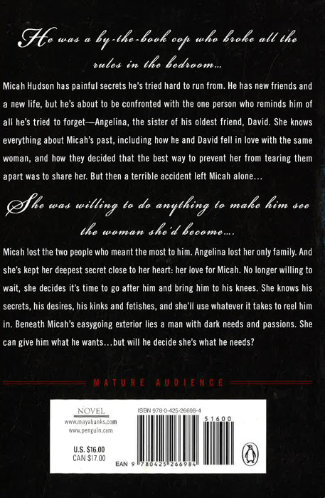 Micah lost the two people who meant the most in the world to him. Angelina lost her only family. And she kept her deepest secret close to her heart. Her love for Micah. No longer willing to wait, she decides it's time to go after him and bring him to his knees. She knows his secrets, his desires, his kinks and fetishes, and she'll use whatever it takes to reel him in. Behind the easygoing, loves women exterior lies a man with dark needs and passions. She can give him what he wants. But will he decide she's what he needs?