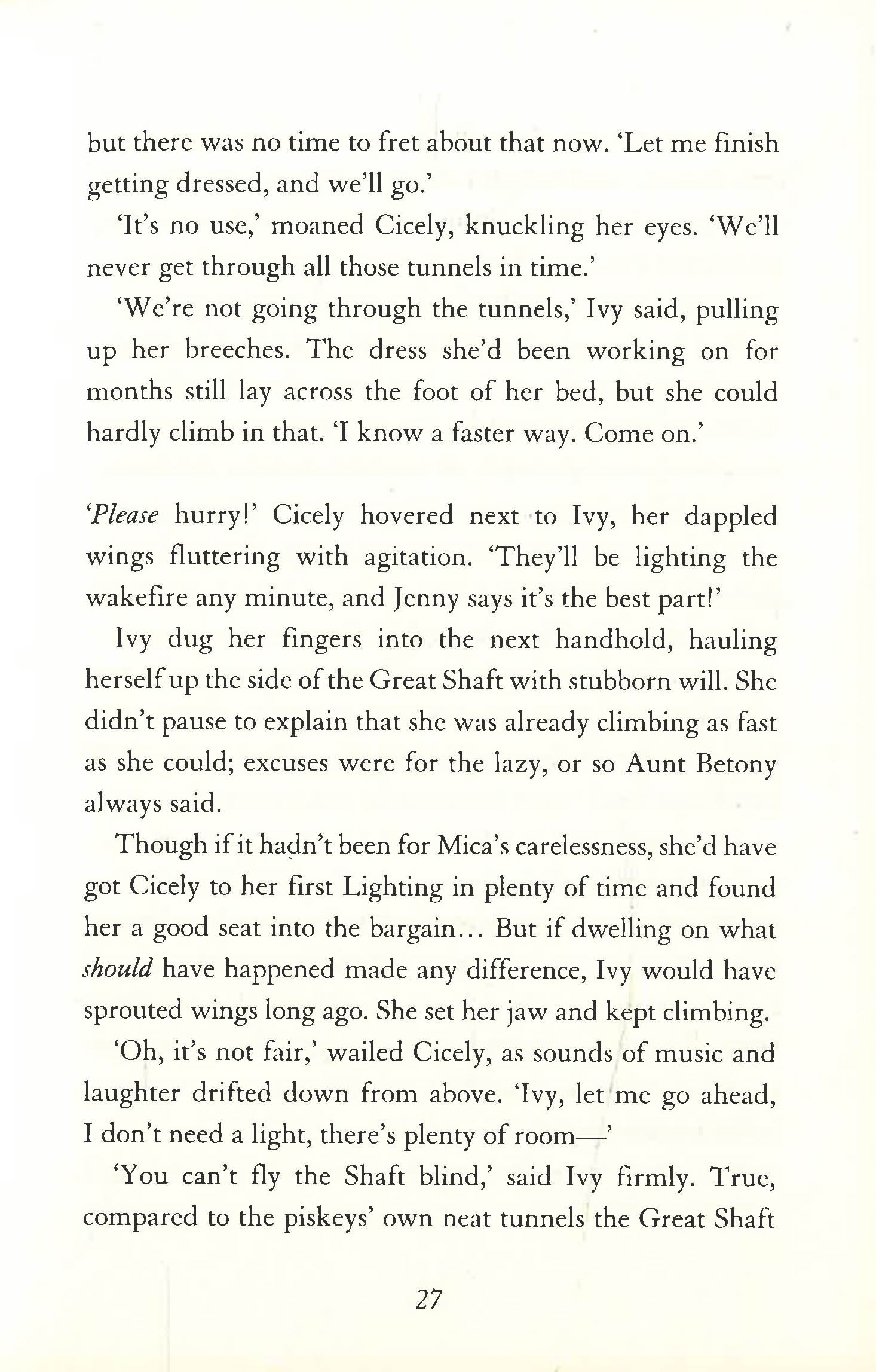 Ivy is a determined young faery, living in an abandoned tin mine with her clan. In a cruel twist of fate she was born without wings, and she longs to fly like the others. When she meets an enigmatic stranger, he seems to offer an answer. But there is more to him than meets the eye - and more secrets in Ivy's world than she ever realised...