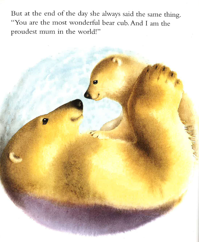 Polar Star is the brightest bear cub in the Arctic, so he's sure his first swim will be easy. But Polar Star jumps into the ocean and sinks. Mum is there to drag him out, but from then on he is frightened of the water. But in time Mum gives Polar Star the reassurance he needs to swim on his own.