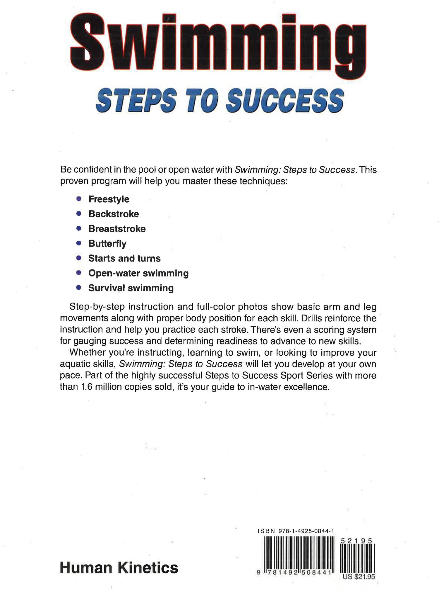 Step-by-step instruction and full color photos show basic arm and leg movements along with proper body position for each skill. Drills reinforce the instruction and help you practice each stroke. There's even a scoring system for gauging success and determining readiness to advance to new skills. Whether you're instructing, learning to swim, or looking to improve your aquatic skills, Swimming: Steps to Success will let you develop at your own pace. Part of the highly successful Steps to Success Sport Series with more than 1.6 million copies sold, it's your guide to in-water excellence.