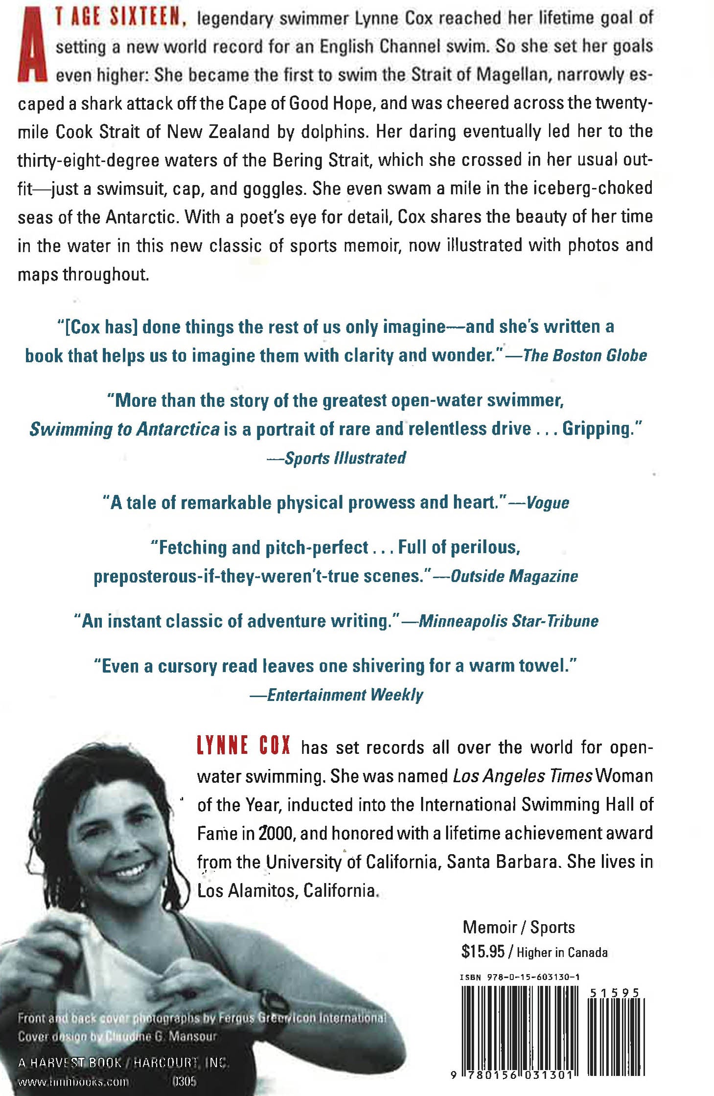 Now in paperback, with photos and maps added especially for this new edition, here is the acclaimed life story of a woman whose drive and determination inspire everyone she touches. Lynne Cox started swimming almost as soon as she could walk. By age sixteen, she had broken all records for swimming the English Channel. Her daring eventually led her to the Bering Strait, where she swam five miles in thirty-eight-degree water in just a swimsuit, cap, and goggles. In between those accomplishments, she became the first to swim the Strait of Magellan, narrowly escaped a shark attack off the Cape of Good Hope, and was cheered across the twenty-mile Cook Strait of New Zealand by dolphins. She even swam a mile in the Antarctic.