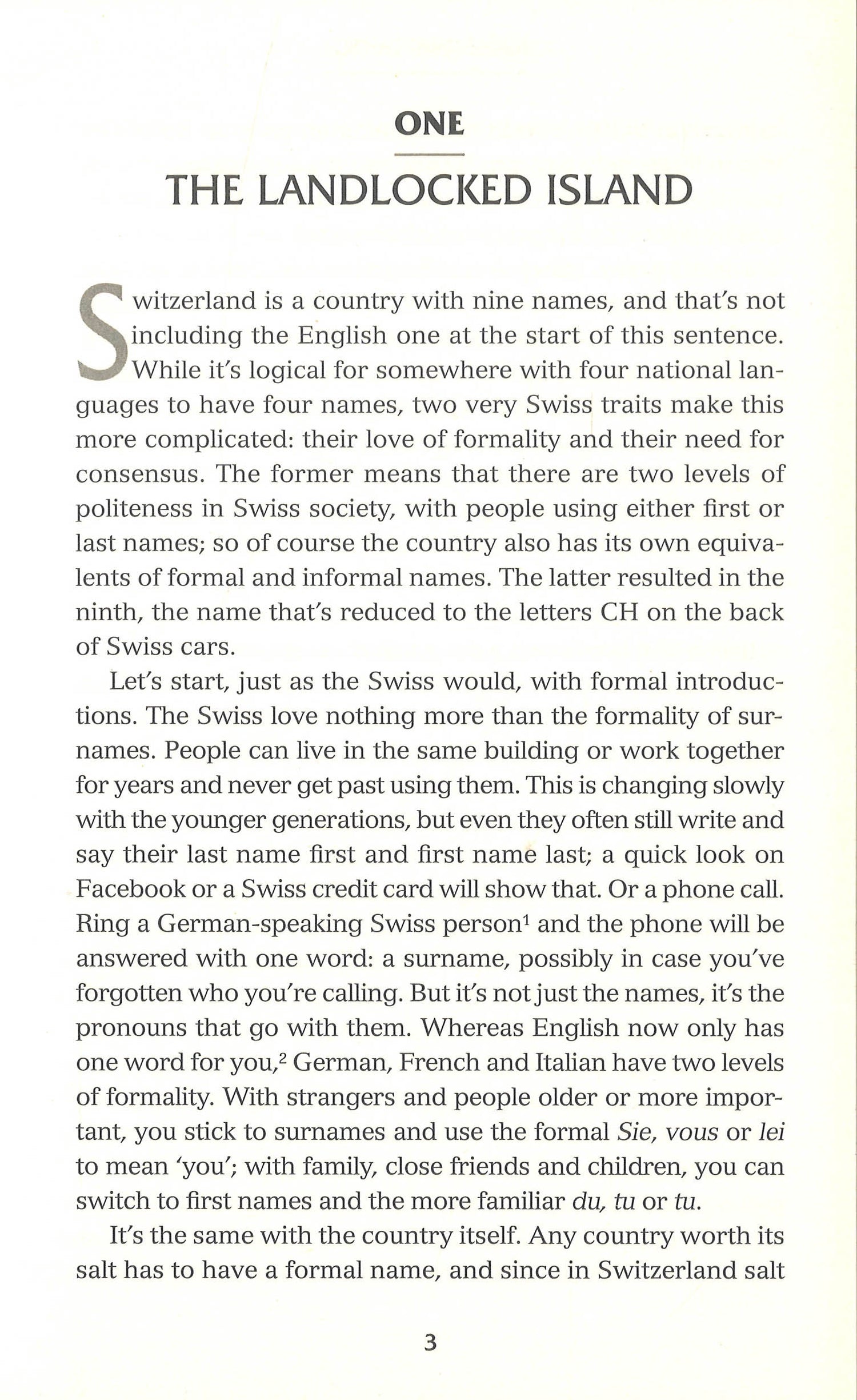 A great subject for a cultural anthropologist and Bewes is a perfect guide' Financial Times, Book of the YearA brand new edition of the international bestseller, with new sections on the Swiss elections, the Swiss citizenship test and how Brexit has affected Switzerland.One country, four languages, 26 cantons, and 7.5 million people (but only 80% of them Swiss): there's nowhere else in Europe like it. Switzerland may be almost 400 km from the nearest drop of seawater, but it is an island at the centre of Europe. Welcome to the landlocked island.Swiss Watching is a fascinating journey around Europe's most individual and misunderstood country. From seeking Heidi and finding the best chocolate to reliving a bloody past and exploring an uncertain future, Diccon Bewes proves that there's more to Switzerland than banks and skis, francs and cheese. This book dispels the myths and unravels the true meaning of Swissness.