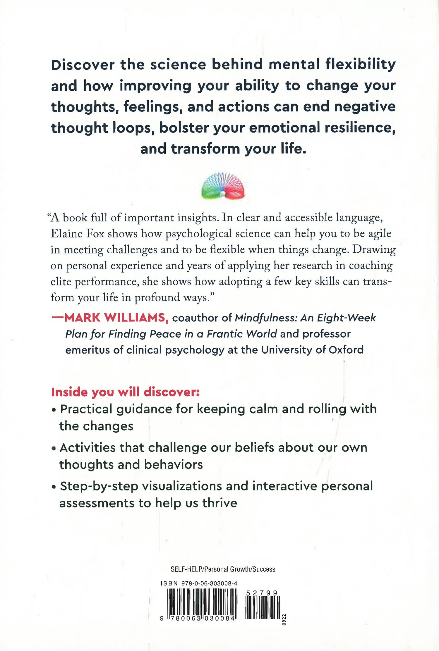“In clear and accessible language, Elaine Fox shows how psychological science can help you to be agile in meeting challenges and to be flexible when things change. Drawing on personal experience and years of applying her research in coaching elite performance, she shows how adopting a few key skills can transform your life in profound ways. A book full of important insights.”—Mark Williams, Professor Emeritus of Clinical Psychology University and coauthor of the international bestseller Mindfulness: An Eight Week-Plan for Finding Peace in a Frantic World