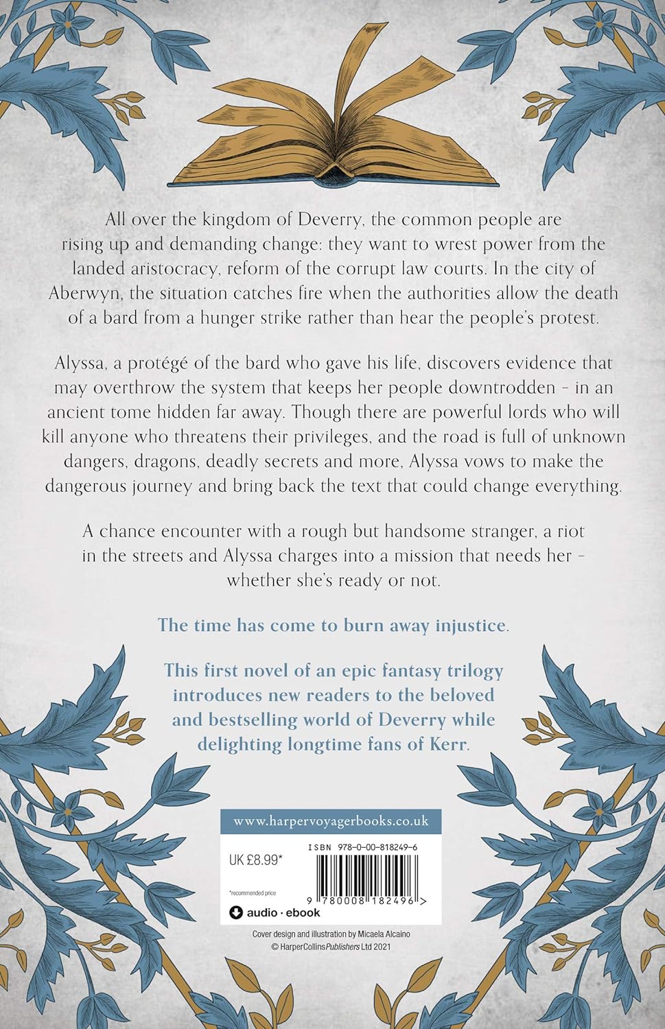 Alyssa, a student and protégé of the bard who gave his life, discovers evidence that may overthrow the system that keeps her people downtrodden – in an ancient tome hidden far away. Though there are powerful lords who will kill anyone who threatens their privileges, and the road is full of the unknown – dragons, royalty, secrets and more – Alyssa volunteers to make the dangerous journey and bring back the text.