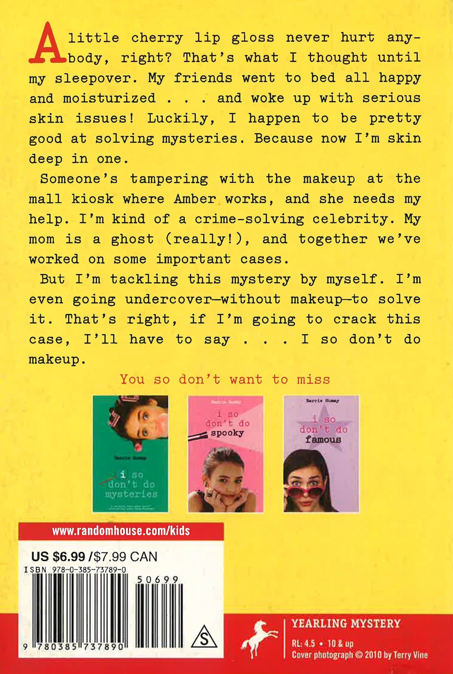 The third title in Barrie Summy's tween mystery series! What's better than a sleepover? A sleepover with makeovers! Sherry and her friends are having an awesome time with eye shadow, glitter, and more hair products than a salon. But when the girls wake up the next morning with serious skin issues, Sherry is freaked. Someone tampered with her makeup! It turns out that the mall's cosmetics kiosk--where Junie's cousin Amber works--has had lots of products returned by upset customers. Sherry's determined to get to the bottom of things. After all, she's become a bit of a crime-solving celebrity (well, at least in the spirit world). Ghost academies around the world are impressed by Sherry and her ghost mom's skills. And if anyone can solve a mystery involving mascara, it's Sherry Holmes Baldwin.