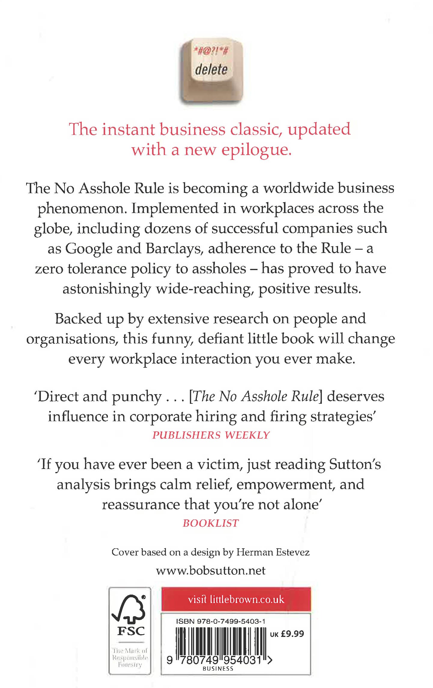 When the Harvard Business Review asked Robert Sutton for suggestions for its annual list of Breakthrough Ideas, he told them that the best business practice he knew of was 'the no asshole rule'. Sutton's piece became one of the most popular articles ever to appear in the HBR. Spurred on by the fear and despair that people expressed, the tricks they used to survive with dignity in asshole-infested places, the revenge stories that made him laugh out loud and the other small wins that they celebrated against mean-spirited people, Sutton was persuaded to write THE NO ASSHOLE RULE. He believes passionately that civilised workplaces are not a naive dream, that they do exist, do bolster performance and that widespread contempt can be erased and replaced with mutual respect when a team or organisation is managed right. There is a huge temptation by executives and those in positions of authority to overlook this trait especially when exhibited by so-called producers, but Sutton shows how overall productivity suffers when the workplace is subjected to this kind of stress.