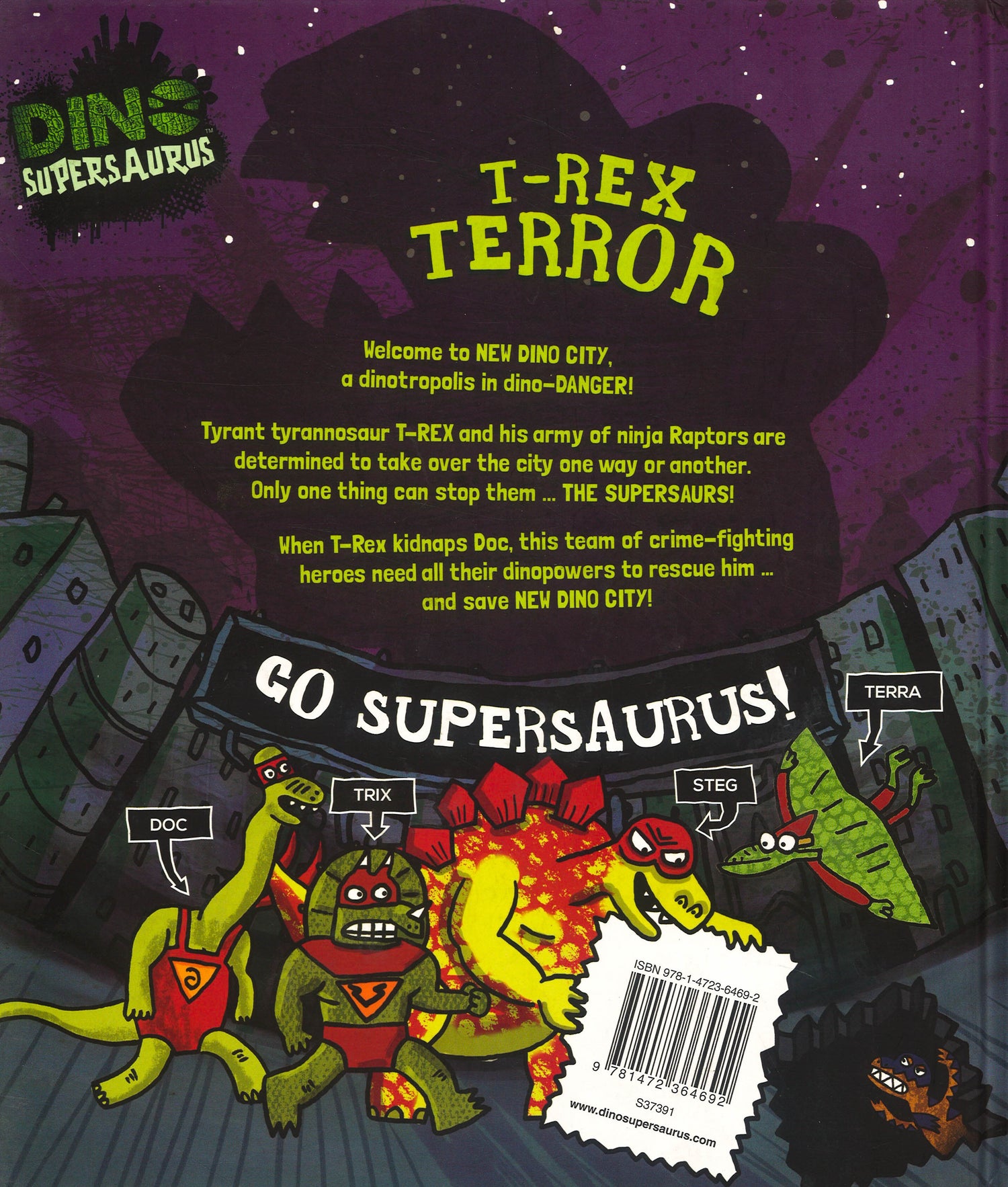 In this captivating picture book with extraordinary illustrations, children will engage with the characters and love reading more than ever! Tyrant tyrannosaur T-Rex and his army of ninja Raptors are determined to take over the city one way or another. Only one thing can stop them The Supersaurs! When T-Rex kidnaps Doc, this team of crime fighting heroes need all their dinopowers to rescue himand save New Dino City! Let the unforgettable Supersaurus legend begin!