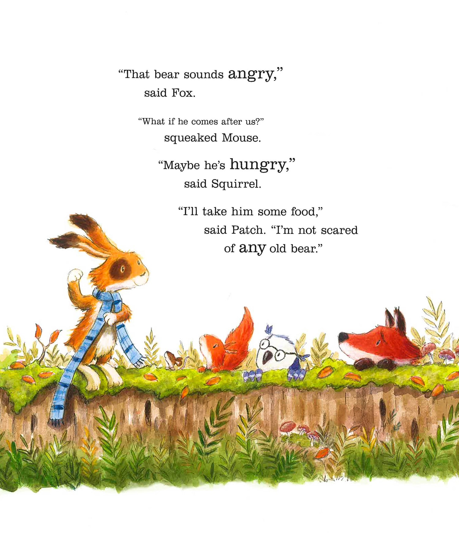 Winter is coming and Bear can't sleep. Oh how he rumbles and grumbles, and growls and howls! "That bear sounds angry!" cry the animals. "What if he comes after us?" But Patch the Hare isn't scared of any old bear and soon he has a brilliant idea!
