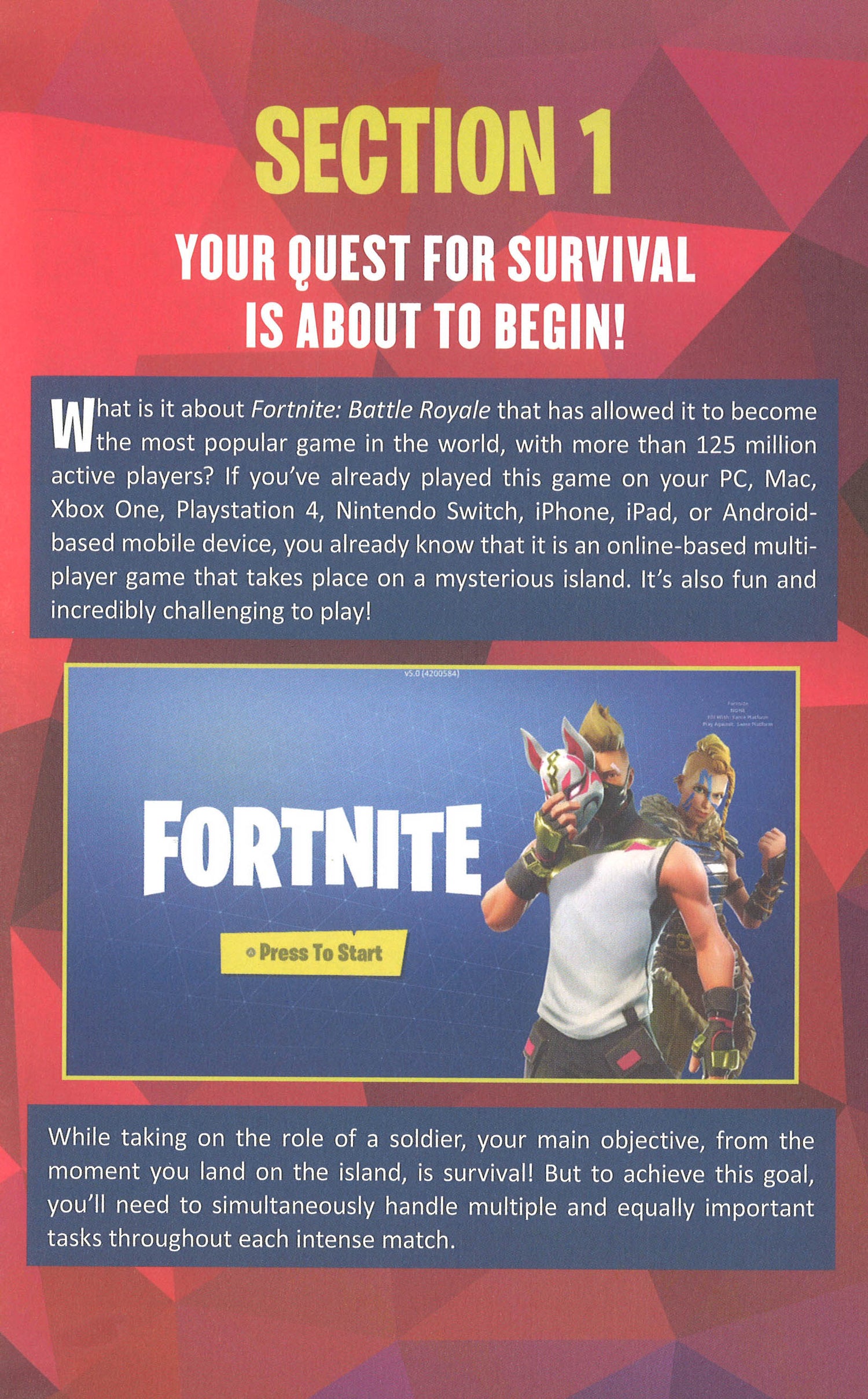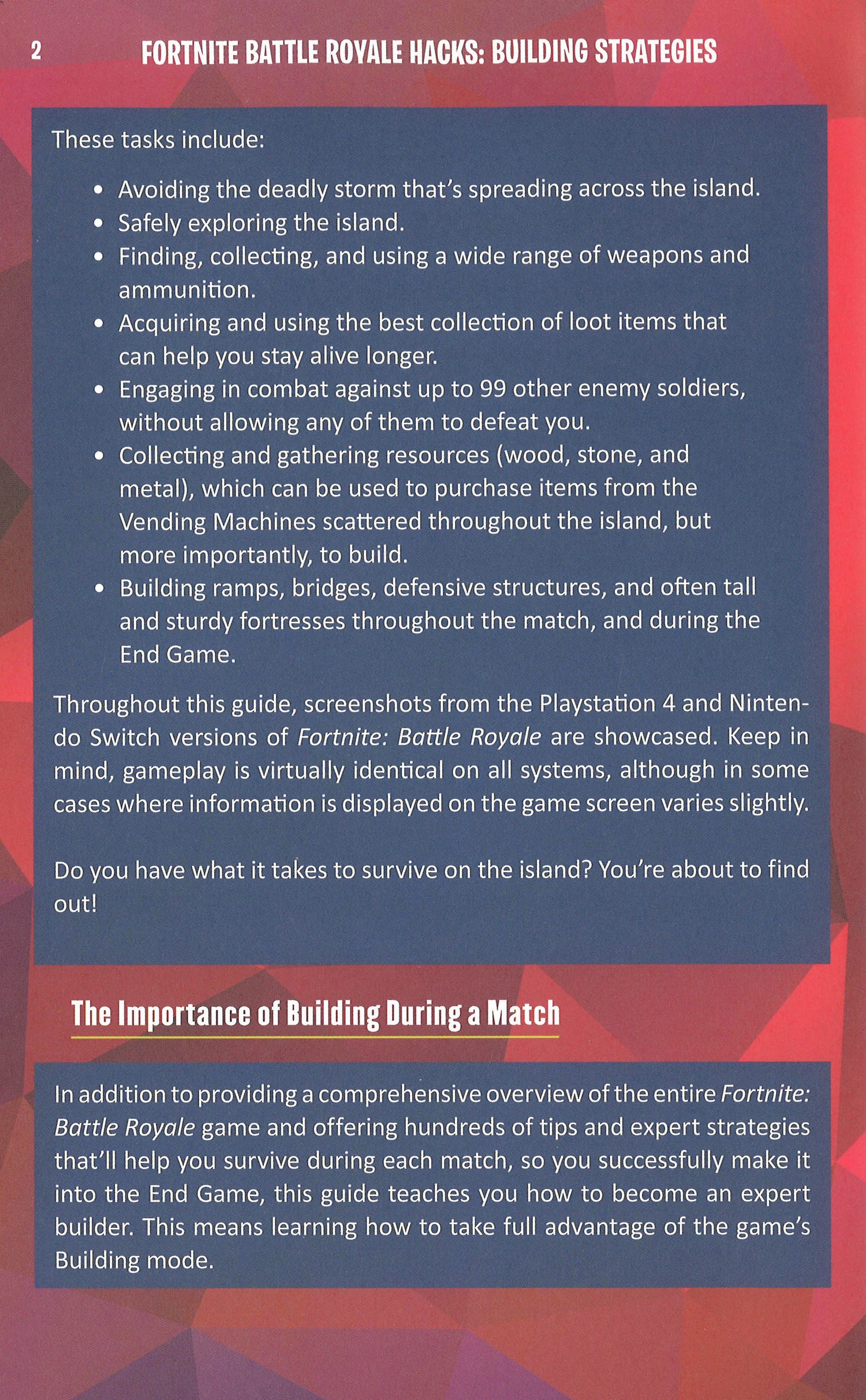 An Architectural and Building-Focused Guide to Battle RoyaleFor boys and girls, who love Fortnite, here is a full color guide with hundreds of tips and tricks for surviving and winning!
