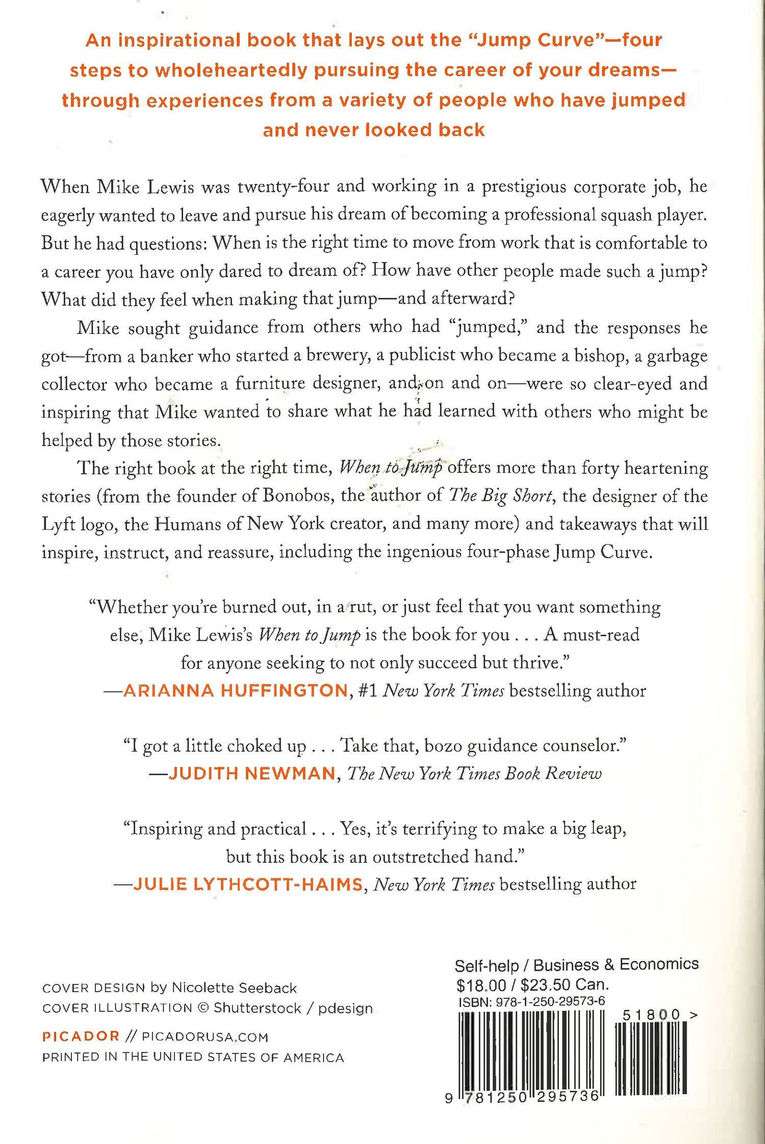 "A lively and inspiring guidebook for anyone who wants to make the jump from normal to extraordinary.--Tony Robbins, #1 New York Times bestselling author of Unshakeable and MONEY: Master the Game An inspirational book that lays out the "Jump Curve"--four steps to wholeheartedly pursuing the career of your dreams--through experiences from a variety of people who have jumped and never looked back. When Mike Lewis was twenty-four and working in a prestigious corporate job, he eagerly wanted to leave and pursue his dream of becoming a professional squash player. But he had questions: When is the right time to move from work that is comfortable to a career you have only dared to dream of? How have other people made such a jump? What did they feel when making that jump--and afterward? Mike sought guidance from others who had "jumped," and the responses he got--from a banker who started a brewery, a publicist who became a Bishop, a garbage collector who became a furniture designer, and on and on--were so clear-eyed and inspiring that Mike wanted to share what he had learned with others who might be helped by those stories. First, though, he started playing squash professionally. The right book at the right time, When to Jump offers more than forty heartening stories (from the founder of Bonobos, the author of The Big Short, the designer of the Lyft logo, the Humans of New York creator, and many more) and takeaways that will inspire, instruct, and reassure, including the ingenious four-phase Jump Curve.